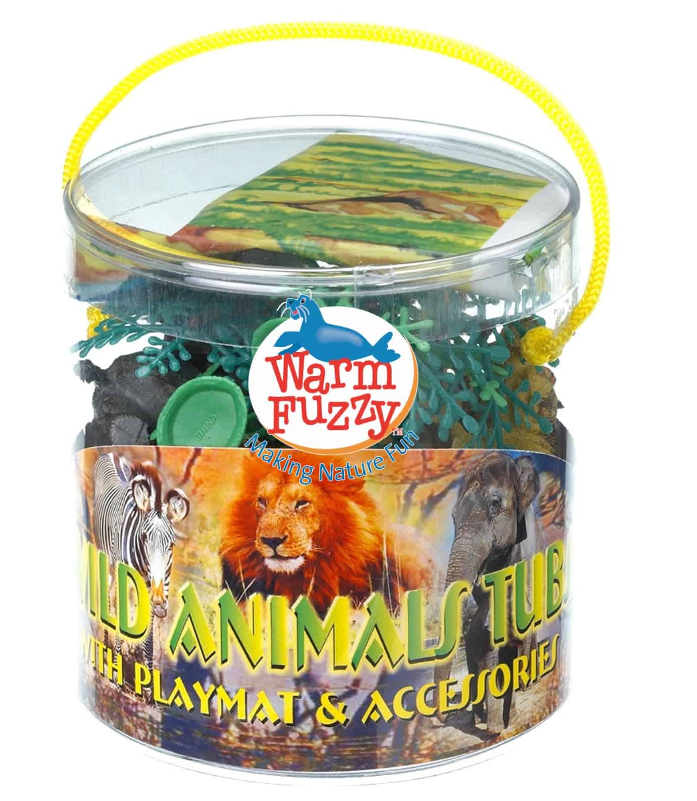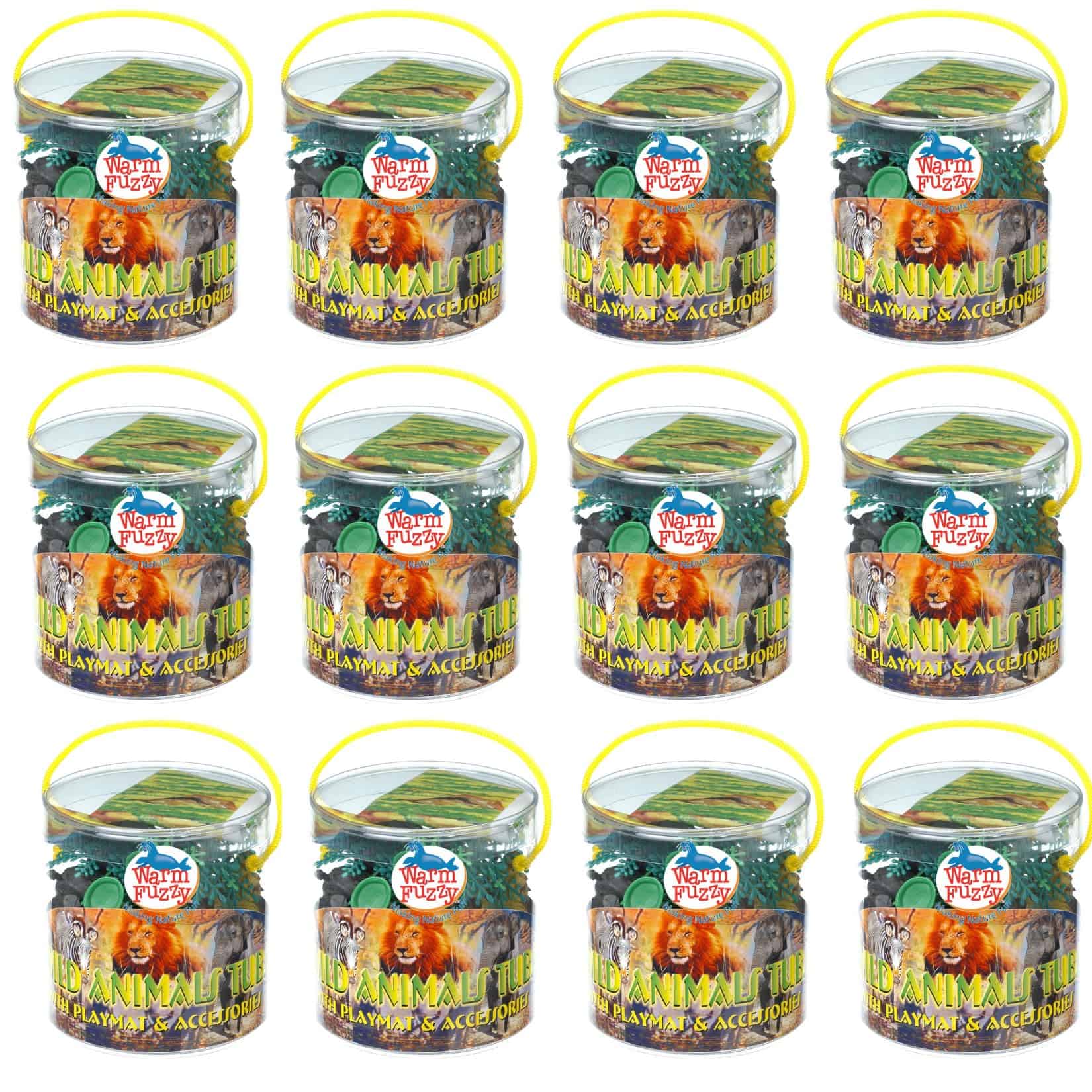 Juguetes Educativos WARM FUZZY Toys para Niños – Juego Completo de 12 con Figuras Surtidas de Animales del Zoológico – Cada Cubeta Incluye Tapete de Juego de Plástico de 17�x12� para Caja de Premios, Kermés del PTA o Recaudaciones Escolares. Este conjunto de animales del zoológico ofrece una mezcla inmersiva de entretenimiento y educación. Al presentar a los niños una variedad de animales del zoológico, despierta su curiosidad sobre la vida silvestre, fomentando el interés en la biología y la zoología, y haciendo que el aprendizaje sea una experiencia divertida y atractiva. ¡El vibrante color y la forma divertida traerán una sonrisa a la cara de todos!