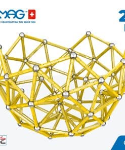 La caja maestra GEOMAG (Grande) contiene 144 varillas magnéticas y 104 esferas de acero. Las varillas, con imanes colocados en cada extremo, se unen a las esferas y te permiten construir mágicas construcciones en 3D. Este set de construcción ayuda a los niños a desarrollar la imaginación, creatividad, lógica, habilidades manuales y motricidad fina. Los niños se sienten fascinados y aprenden mientras se divierten. ¡Construye desde magníficos castillos y torres hasta naves espaciales!