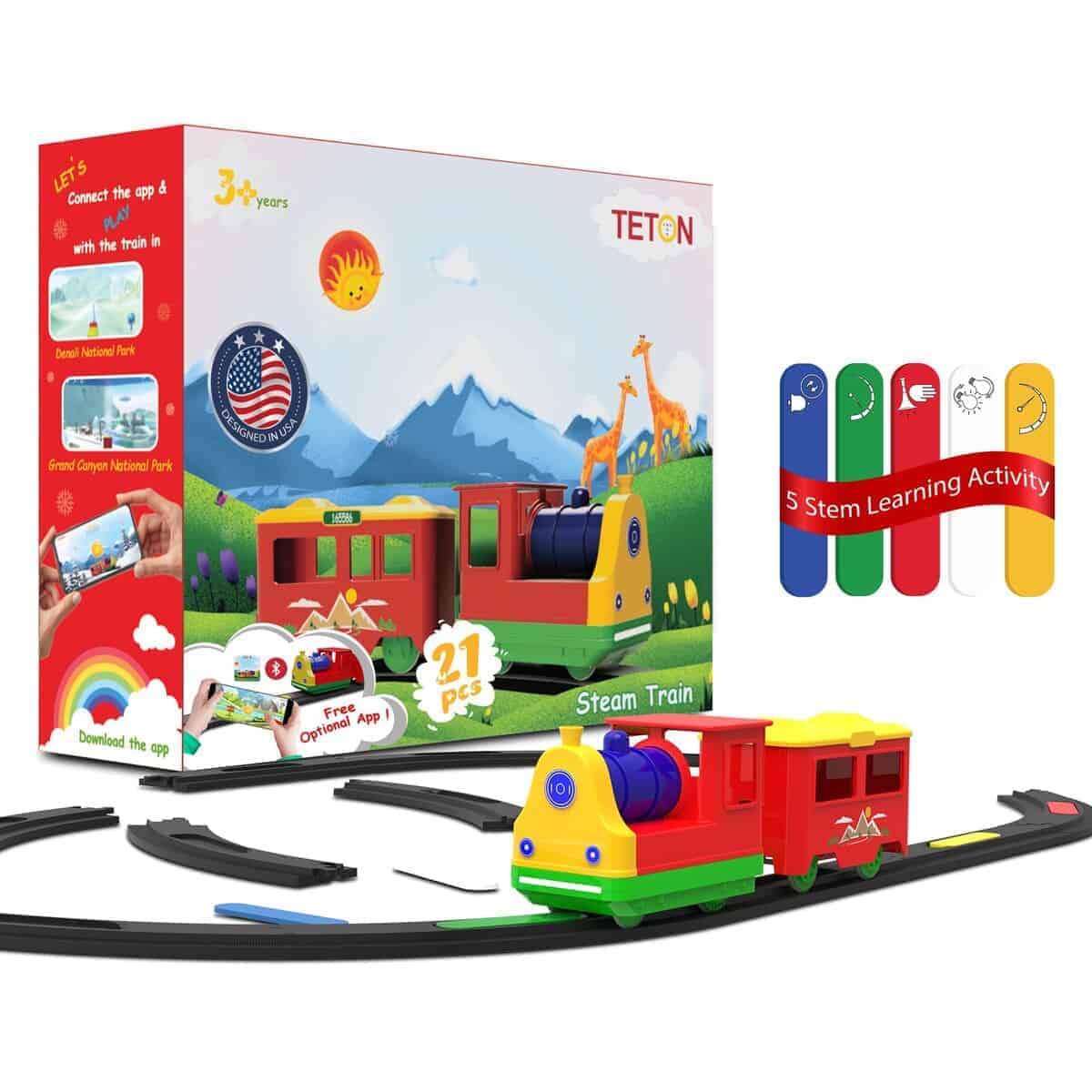 Coding para Kids, Teton Electronics – Tren de vapor con tecnología avanzada, app gratuita para control, bloques de colores y vías de tren coloridas. Este set de tren ofrece infinitas posibilidades creativas, fomentando a los niños a construir diversas formas y diseños. Desarrolla habilidades de codificación temprana con su lógica intuitiva de «Si no», promoviendo el desarrollo del cerebro y el pensamiento lógico en los niños. Un regalo excelente para Navidad, cumpleaños o cualquier ocasión para niños, niños y niñas. ¡Explora el mundo de los juguetes de tren para niños y la codificación con este versátil y divertido set!