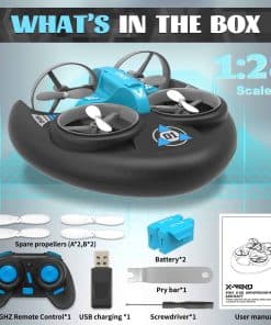 1. El último juguete RC 3 en 1 para niños. El barco RC 3 en 1 tiene tres modos de juego, incluyendo modo de vuelo, modo acuático y modo terrestre. El barco puede flotar en el cielo y en agua, funciona fantásticamente en cualquier superficie lisa como pisos de madera dura y es genial en aguas limpias como una piscina. Diseño desmontable, niños y adultos pueden disfrutar juntos de momentos felices en familia en interiores o exteriores. Juguetes geniales para niños de 8-12 años.