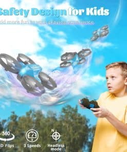 2. Control remoto 2.4 GHz fácil de controlar. El control remoto de 2.4 GHz con fuerte anti-interferencia, control a larga distancia y respuesta rápida aseguran que el coche se mueva o vuele a donde quieras. Con vueltas de 360 grados, acrobacias de rollos y modo sin cabeza, añadiendo más diversión a tu experiencia de juego.