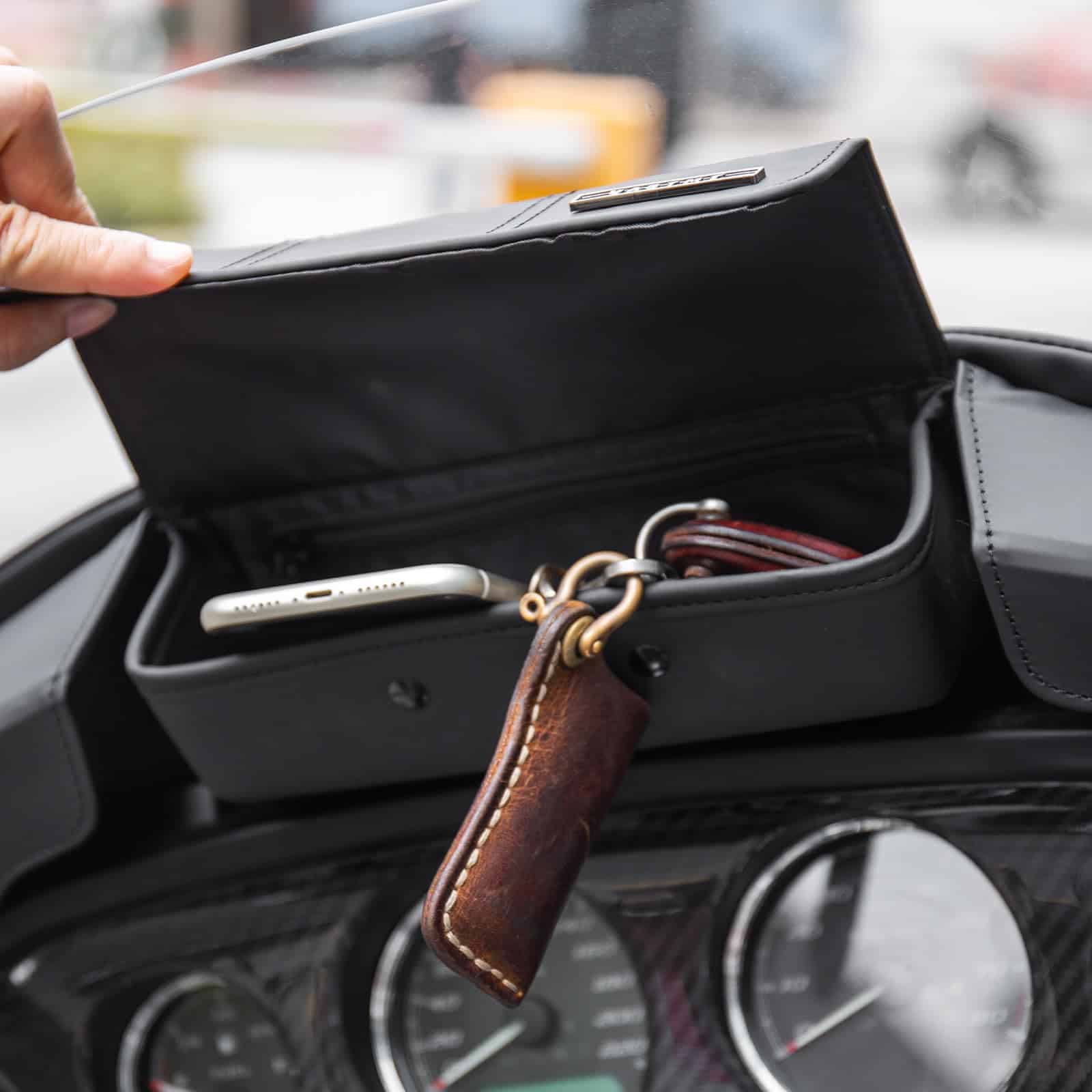 3. Característica: La bolsa de careta se ajusta perfectamente al parabrisas, ideal para almacenar dispositivos móviles, gafas de sol, herramientas, llaves y otros objetos pequeños.