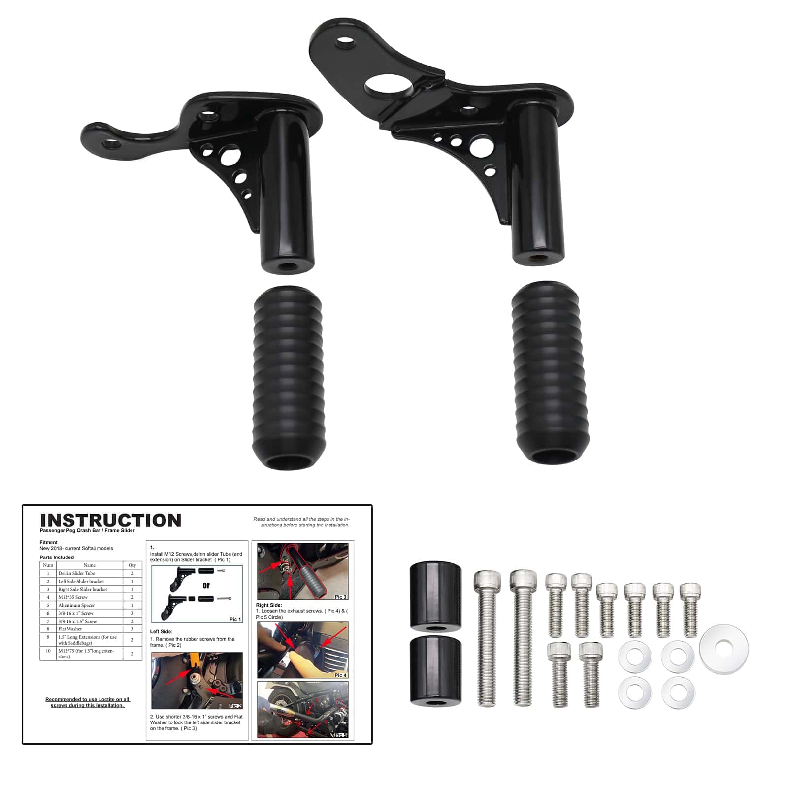 3. Característica: Disponible en kits de longitud estándar y extendida. El kit de extensión con extensiones de 1.5″ de largo para usar con alforjas. Viene empaquetado con el kit estándar deslizante de barra de choque de pasajero con los espaciadores adicionales y pernos más largos para extender la sección del tubo. Y este deslizante de barra de choque de pasajero está soldado con precisión para mejorar su apariencia.