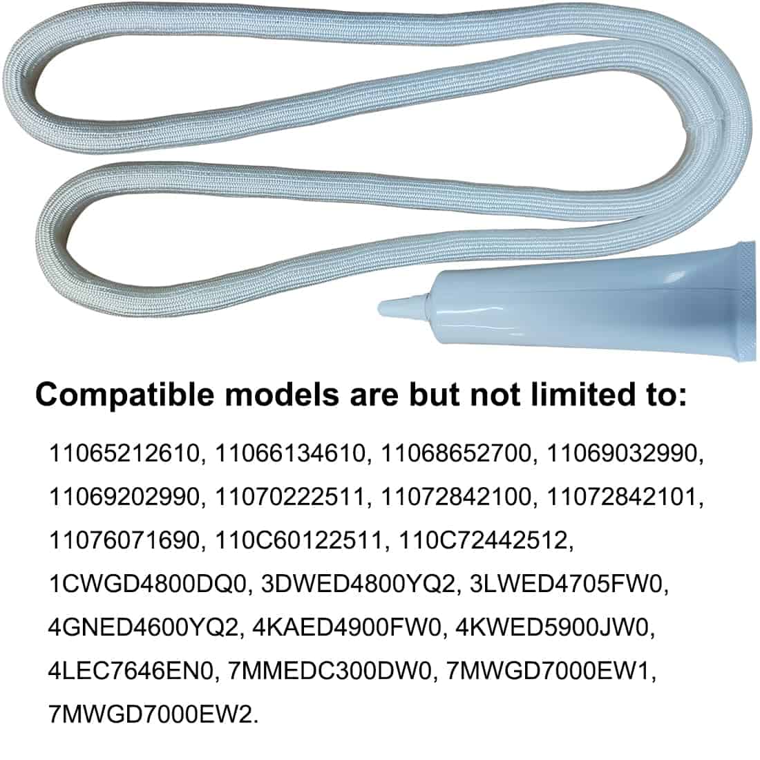1. Reemplaza el número de pieza de la junta de puerta W10861521 Reemplaza: W10389572, W10730752, AP5999407, WP3405246, WP3405245, 3405245, 3405246, 4382011, PS11731610. Compatible con modelos de secadoras de marcas como Maytag, Kenmore, Amana, Roper, Magic, Chef, Crosley, Admiral, Estate, Kirkland, KitchenAid, Inglis Whirlpool Dryer.