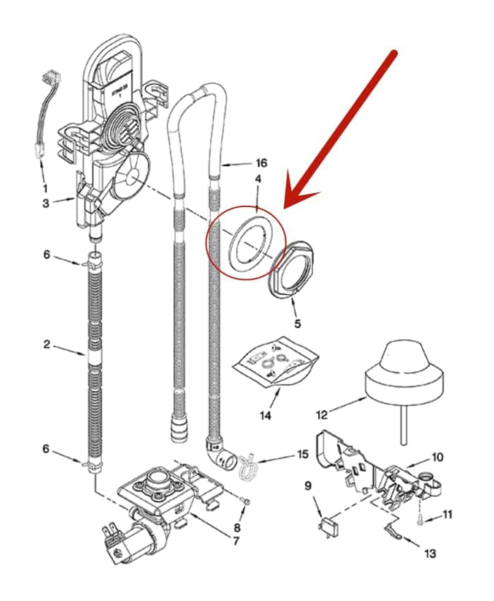 Junta de puerto de entrada de agua para lavavajillas