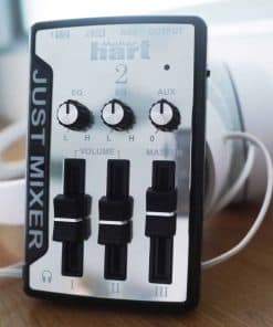 ¡Conoce el nuevo y mejorado JUST MIXER 2! Después del sobresaliente éxito de lanzar el JUST MIXER original, Maker Hart tomó en cuenta las opiniones y preferencias de los usuarios para crear un mezclador rediseñado diseñado para satisfacer mejor sus necesidades de mezcla diarias. Es ideal para aquellos que necesitan una opción confiable y asequible para combinar audio de hasta 3 dispositivos estéreo a través de jacks de entrada de 3.5mm y cables AUX. Ahora con dos salidas de 3.5mm, puedes conectar tanto auriculares como altavoces. Ultraligero y compacto, este mini mezclador portátil se puede usar prácticamente en cualquier lugar, incluyendo sobre la marcha y en el coche. Lo que ha cambiado: ¡La amplificación máxima para CH1 y 2 se ha mejorado de 20dB a 45dB! La entrada AUX es de 20dB. Interfaz de Audio USB: ¡Salida de audio a través de cable USB directamente a la computadora para una grabación de mejor calidad; compatible con varios sistemas operativos incluyendo Windows 7/8/10 y Mac OS. Reemplazado los Botones de Balance con los Botones de Ecualización, para que los usuarios puedan ajustar el equilibrio de frecuencias. Agregada una salida separada de auriculares de 3.5mm con control de volumen. Nuevo acabado elegante en dorado / plateado. Cable USB y Adaptador incluidos. Según el diseño, JUST MIXER 2 es más adecuado para usar con auriculares y sistemas de sonido no premium. Debido al aumento de la ganancia, limite los niveles de ruido adicionales manteniendo el volumen del dispositivo de entrada bajo y aumentando los niveles de volumen en el mezclador en consecuencia. CONTROLES Y TOMAS: 3 x ENTRADA ESTÉREO 3.5mm (se puede dividir en 4 x 1/4″ mono; se requiere adaptador). 2 x SALIDA ESTÉREO 3.5mm. INDICADOR DE ENERGÍA / SOBRECARGA (LED muestra la energía y el nivel de distorsión). PERILLAS DE ECUALIZACIÓN para CH1 y 2. DESLIZADORES DE VOLUMEN MAESTRO Y DE CANAL. SALIDA USB DE ALIMENTACIÓN / AUDIO. ESPECIFICACIONES: Ganancia: Máx. 45dB. Alimentación: fuente de alimentación micro USB de 5V. Peso y Dimensiones: 3.2oz / 92g; 2.5 x 4.1 x 0.9″ / 10.5 x 6.5 x 2.4cm. Contenido del Paquete: JUST MIXER 2, Cable USB a Micro USB, Adaptador 5V/1A, Bolsa, Manual del Propietario.