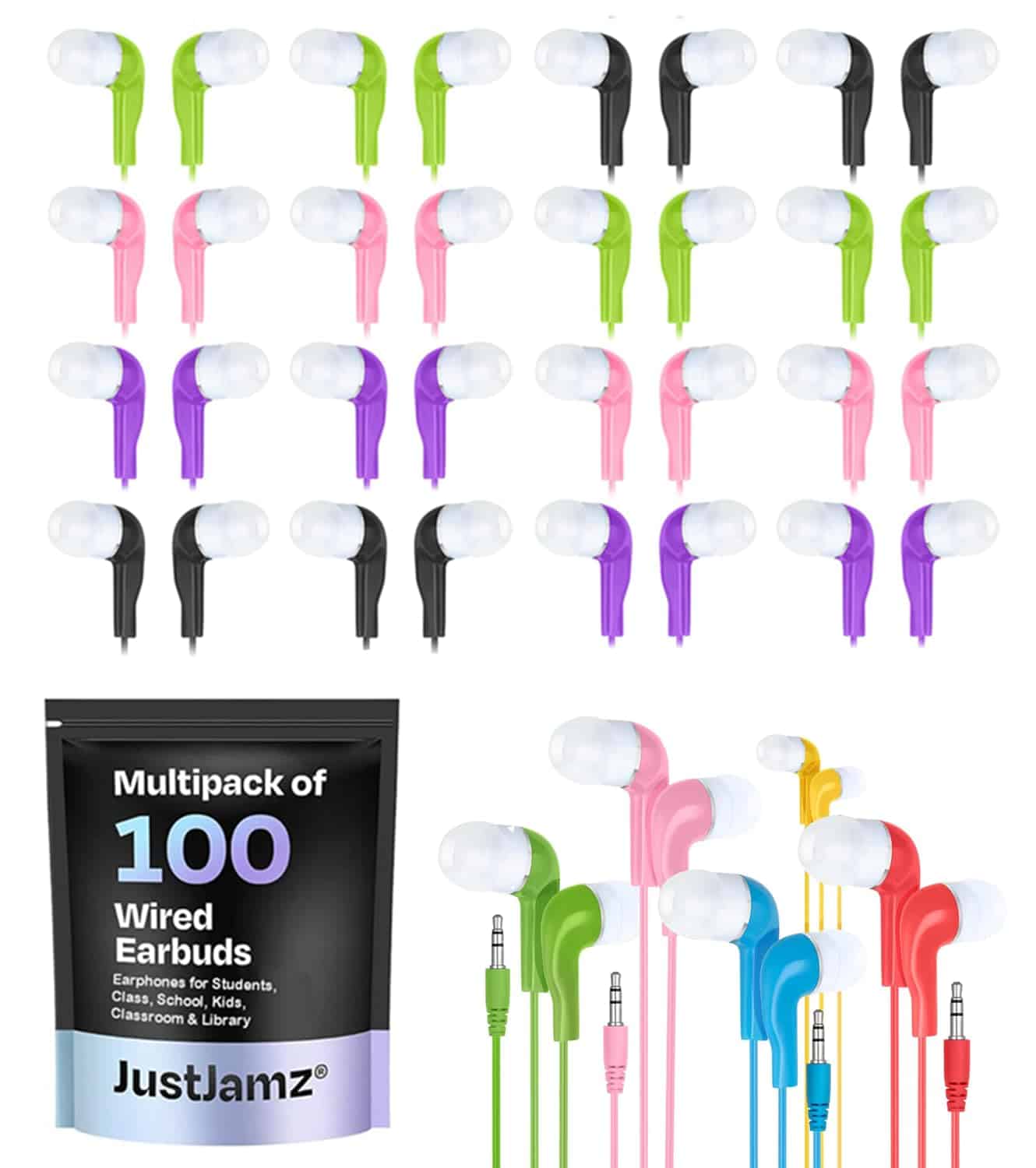 JustJamz Auriculares a Granel – Paquete de 100 Auriculares