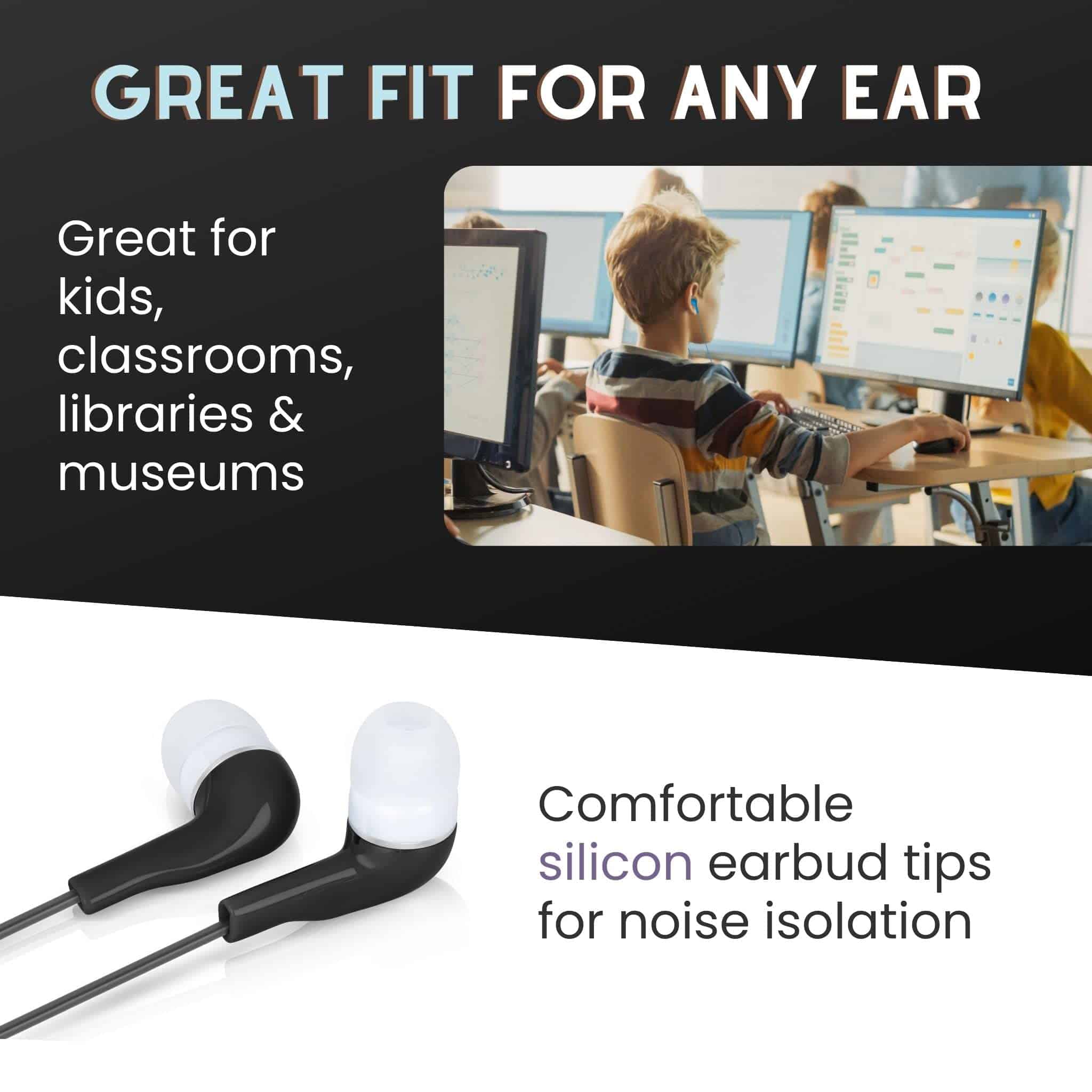 1. Auriculares a Granel para Aulas y Escuelas Este paquete de 100 auriculares con cable es perfecto para profesores, estudiantes y uso escolar. Ideal para aulas, bibliotecas y grupos de estudio, asegurando que todos tengan su propio juego de auriculares. 2. Auriculares Desechables y Duraderos Diseñados para un uso duradero, estos auriculares desechables ofrecen calidad de sonido confiable al mismo tiempo que son rentables para escuelas, empresas y eventos grandes. 3. Compatibilidad Universal Con un conector de audio estándar de 3.5 mm, estos auriculares a granel para uso en aulas son compatibles con Chromebooks, laptops, tablets, audiolibros y otros dispositivos de medios. 4. Cómodos y Ligeros Estos auriculares económicos cuentan con puntas de silicona suave para un ajuste seguro. El diseño de auriculares con cable a granel garantiza una experiencia cómoda para un uso prolongado en el aula o con estudiantes. 5. Paquete Múltiple de Auriculares Coloridos y Rentables Cada juego de auriculares a granel para aulas incluye colores surtidos, lo que facilita la asignación y organización. Perfecto para escuelas, profesores, bibliotecas y actividades en grupo.