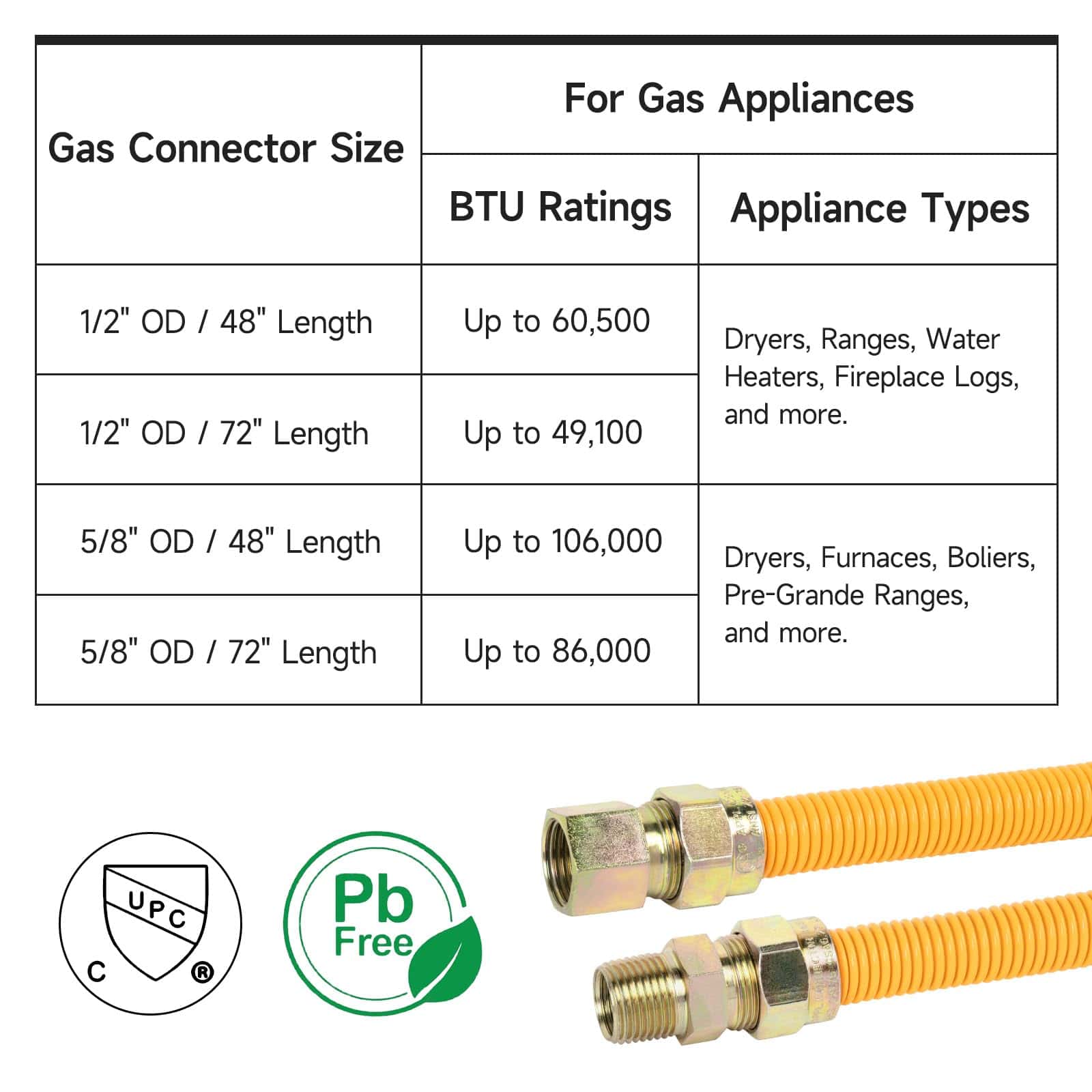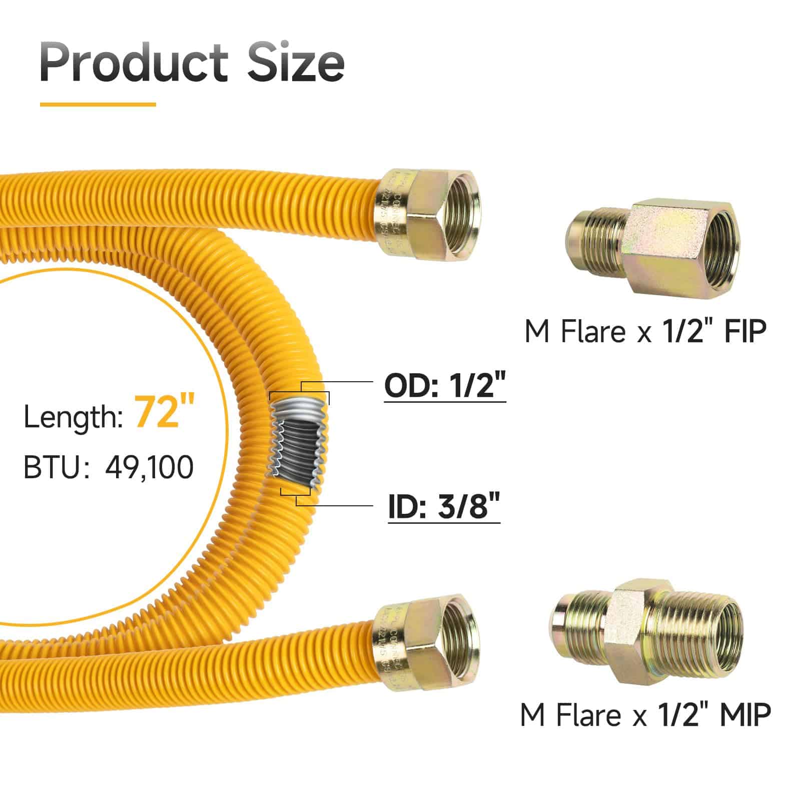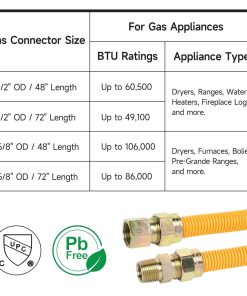 JUWO 72″ Línea de Gas para Secadora, Estufa, Calentador de