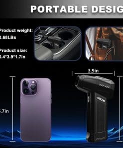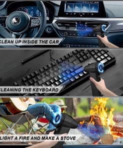 5. Soplador de Aire Multiusos: Los sopladores eléctricos son ideales para limpiar lugares pequeños, estrechos y difíciles como teclados de computadora, laptops, cámaras, asientos de auto y persianas, y también se pueden usar para barrer nieve, limpiar el piso y el pelo de mascotas.