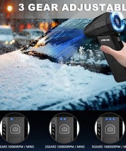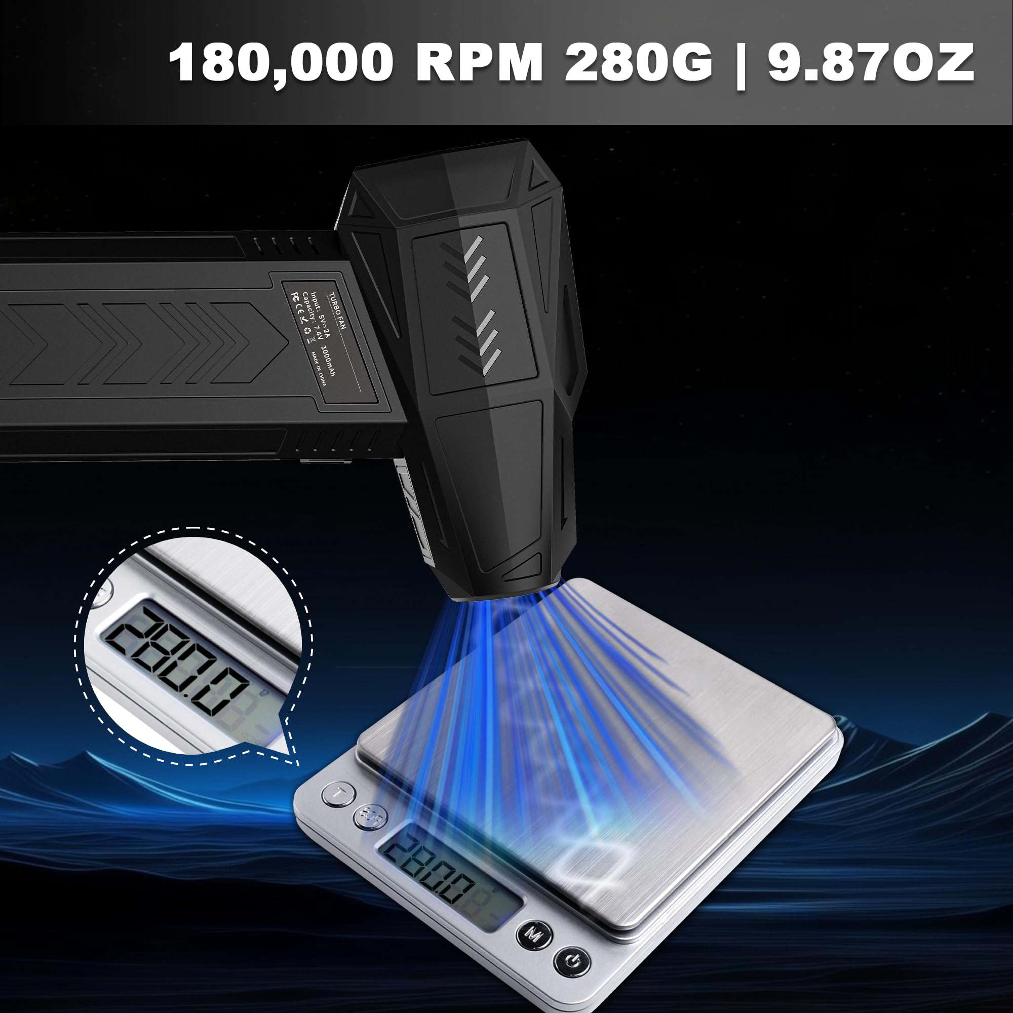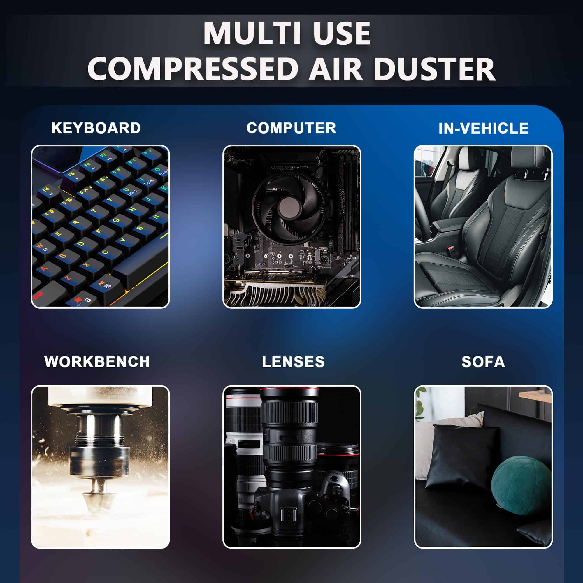 1. Soplador de Aire Comprimido: Recolector de polvo de aire de alta velocidad, rendimiento fuerte, la fuerza de soplado máxima es de 280g, y la velocidad máxima del viento es de más de 52 m/s. Puede eliminar fácilmente la suciedad oculta en varios recovecos del teclado o cualquier dispositivo electrónico, lo que resulta extremadamente conveniente de usar en un recolector de polvo de casa, oficina o auto.