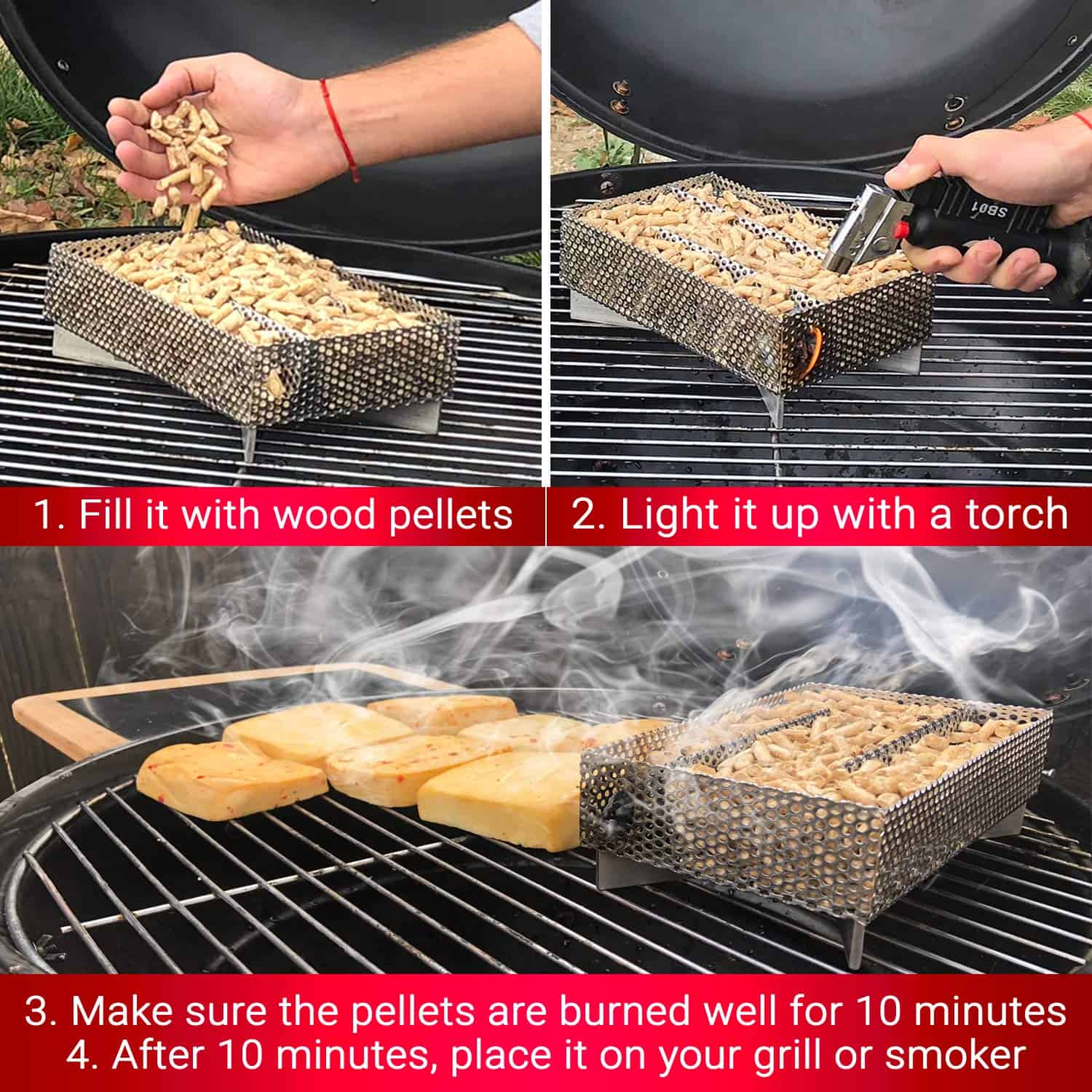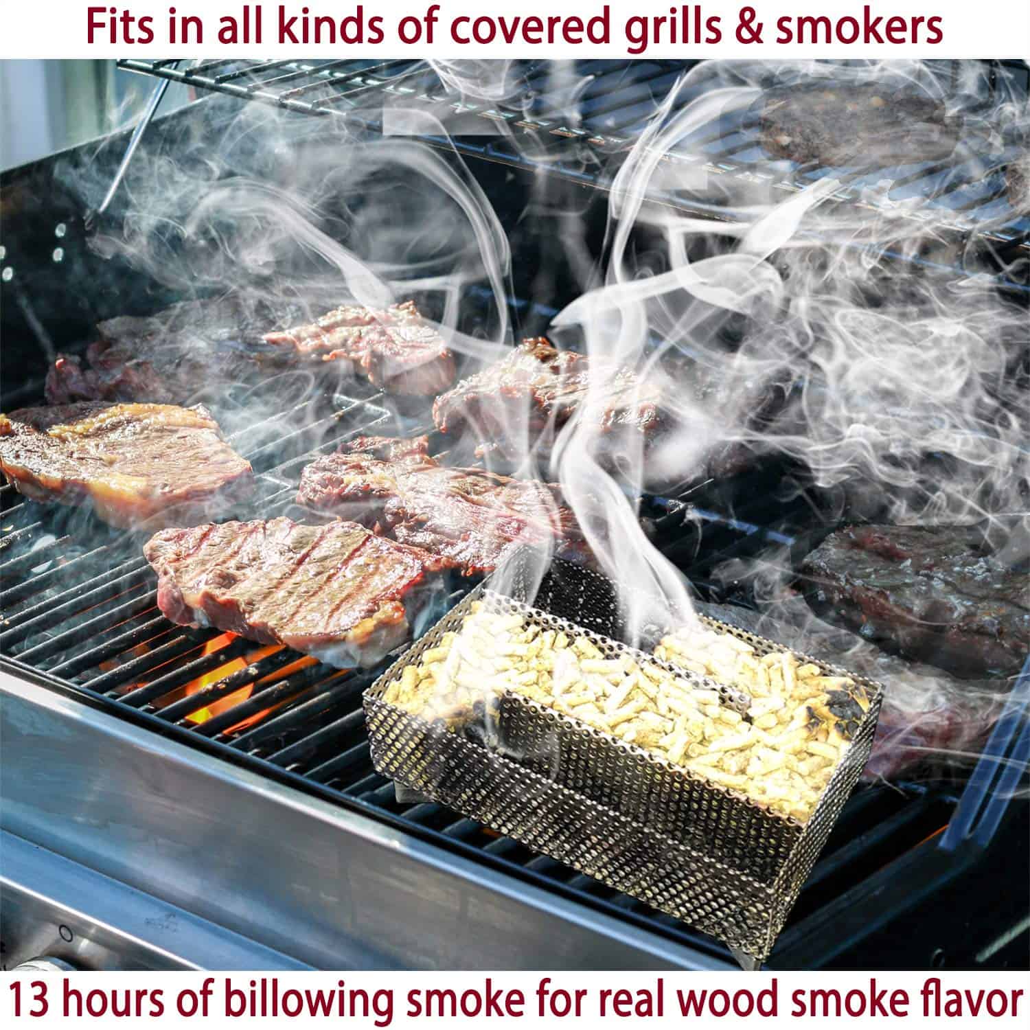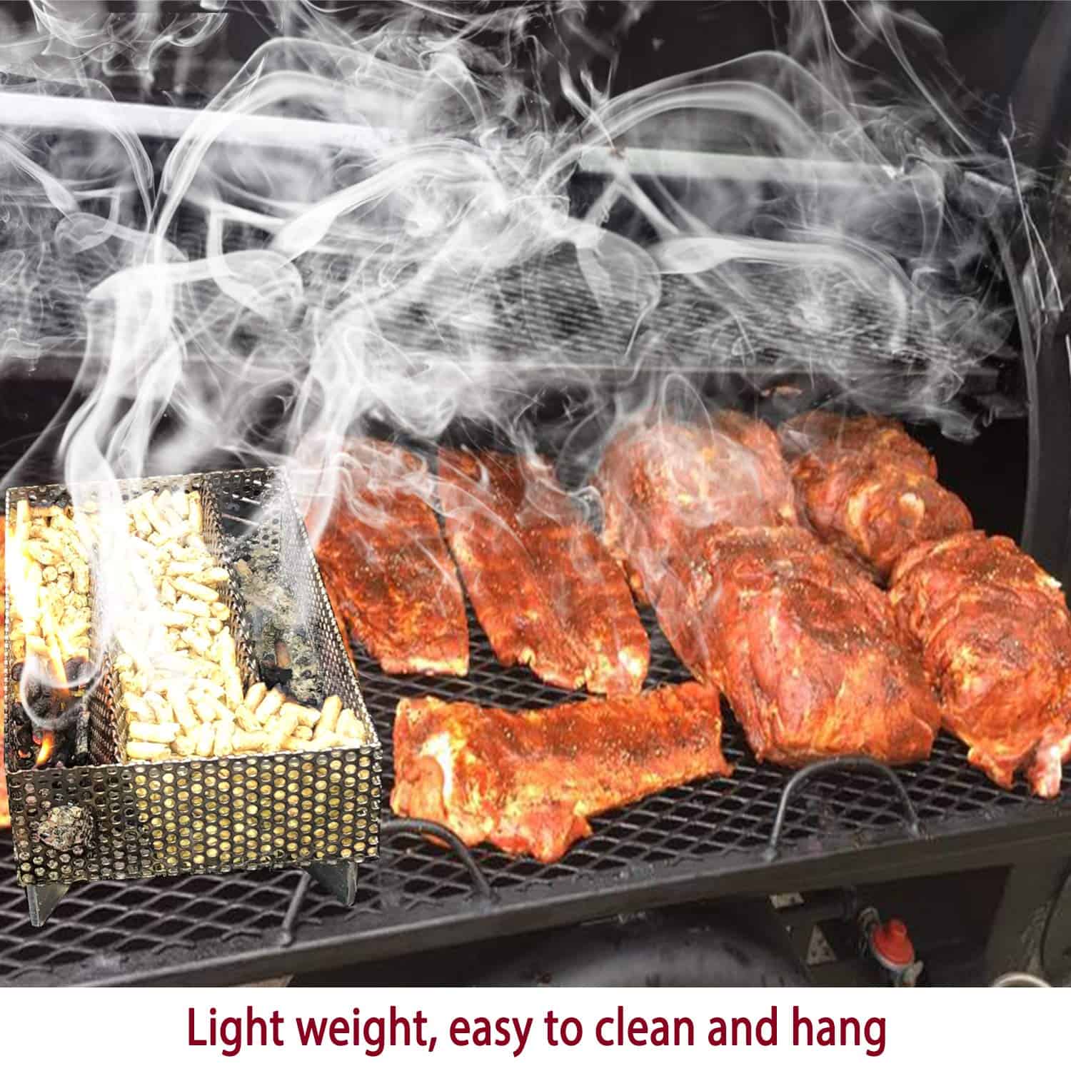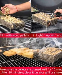 1. TRANSFORMA TU PARRILLA EN UN FANTÁSTICO FUMADOR No se necesitan trucos o herramientas elegantes. Simplemente agrega la bandeja de fumador de pellets de Kaduf a tu parrilla de casa y ¡acabas de convertir tu parrilla normal en un fantástico fumador! ¡Es una excelente manera de añadir ese delicioso y sabroso olor a humo a cualquier tipo de carne, pescado o queso. Si quieres obtener el mejor resultado de ahumado, necesitas la bandeja de pellets de Kaduf! 2. FUNCIONA DE MARAVILLA PARA AHUMAR EN CALIENTE Y EN FRÍO Añade un poco de humo extra a tu barbacoa o fumador, y sé la estrella de tu próxima fiesta al aire libre. Usa la bandeja de fumador para ahumar queso, pescado, costillas, carne, cerdo, pollo, carne curada, hot dogs, salchichas, cordero, nueces, frutas, maíz y más. ¡Es perfecto para ahumar a bajas temperaturas, e incluso tiene ahumado en caliente y en frío para queso! 3. AHUMADO FÁCIL, SEGURO Y SABROSO El tamaño pequeño del fumador de pellets lo hace fácil de usar en cualquier parrilla (carbón, gas, eléctrica, portátil, de pellets) o fumador. Funciona con cualquier tipo de pellets o virutas de madera como cereza, nogal, manzana, mezquite, pacana y más. Una bandeja de fumador llena de tus pellets favoritos produce mucho humo durante 12 HORAS. 4. FÁCIL DE USAR Y FÁCIL DE LIMPIAR – Casi no hay tiempo de preparación ni configuración. Puedes empezar a ahumar tus platos favoritos en unos 10 minutos. Y cuando termines, es fácil de limpiar. Está hecho de material de acero inoxidable 100% de alta calidad, y eso significa que la caja de fumador de pellets de Kaduf está hecha para durar y es muy resistente. No es un producto barato que se desgaste. 5. FÁCIL DE AHUMAR COMO UN PROFESIONAL ¡Imagina lo impresionados que estarán todos cuando sirvas deliciosos platos ahumados y saludables frente a ellos! ¡Tu imaginación es tu única limitación con esta bandeja de fumador de pellets! ¡Pruébalo ahora y no te decepcionarás!