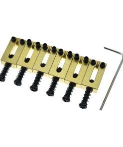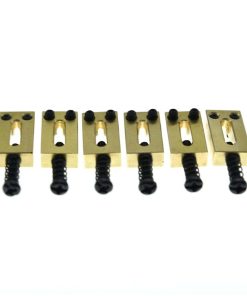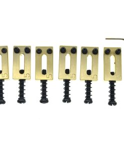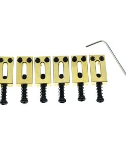KAISH Selletas de puente de guitarra de latón macizo Silla de latón con espaciado de 10.5 mm con tornillos negros para Stratocaster / Telecaster. Las selletas de latón macizo de alta calidad mecanizadas con precisión aumentarán la duración y estabilidad de la afinación. No hay bordes ásperos ni rebabas; las selletas de latón ofrecen una mejor entonación y sostienen firmemente las cuerdas. Estas selletas requieren muy poco trabajo y habilidad para instalar, siendo una forma sencilla de mejorar tu tono y duración. Las dimensiones son 20 mm de longitud, 10.5 mm de ancho, 5.5 mm de altura, un ancho de 10.50 mm (estrecho) para el ancho de cuerda de E a e 52.5 mm (2 1/16″). Viene en un juego de 6 piezas para muchas guitarras eléctricas; puedes elegir tornillos niquelados o negros para las selletas.