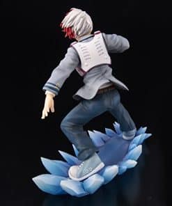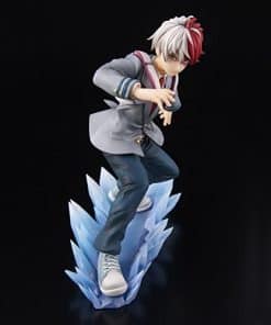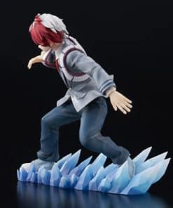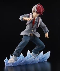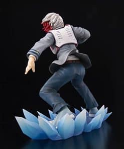 Esta figura llena de acción presenta a Todoroki deslizándose sobre hielo de su propia creación, su expresión indicando la seriedad de la situación.