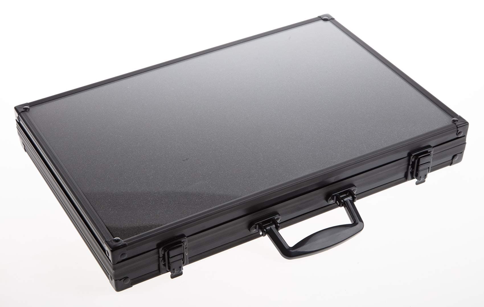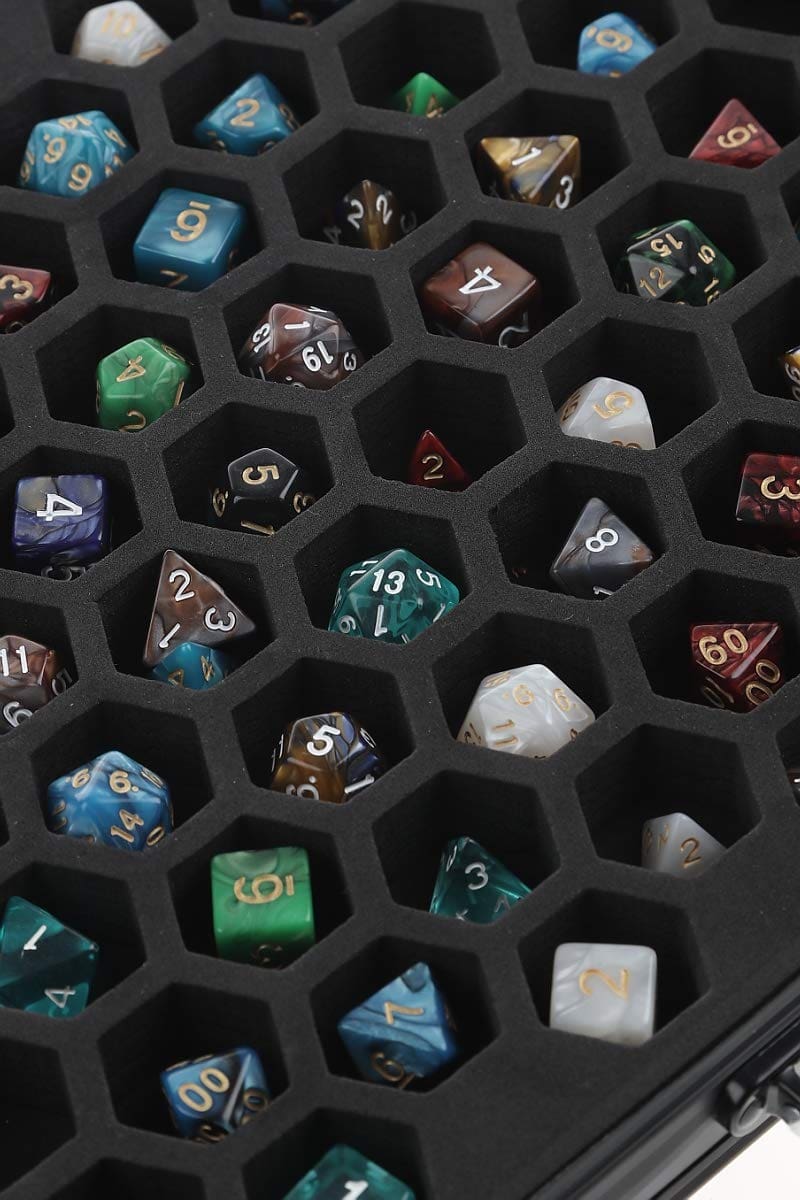 «Este es el estuche que tienes en el suelo hasta que llegue la hora del BBEG. Levantas este cachorro, pones música de batalla y sonríes a tus jugadores. Permites que tu villano hable monólogo, luego abres silenciosamente el estuche mientras los jugadores miran con temor. Levantas tu juego de dados del estuche, los colocas suavemente en la mesa y miras a los ojos de tus jugadores mientras les dices, «Tira por iniciativa». – de C.H.