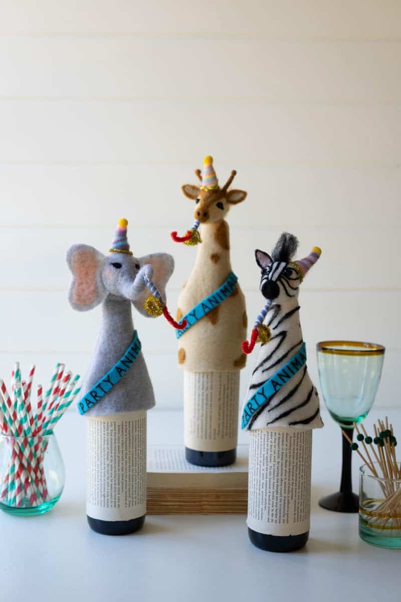 KALALOU CHB2365 Set De Tres Taponadores de Botellas de Fiesta de Animales de Fieltro – Uno de Cada Diseño. Acabado: Fieltro. Color: Multi. Material: Fieltro. Dimensiones (en): 5″d x 10″a. Limpiar con paño sin pelusa.