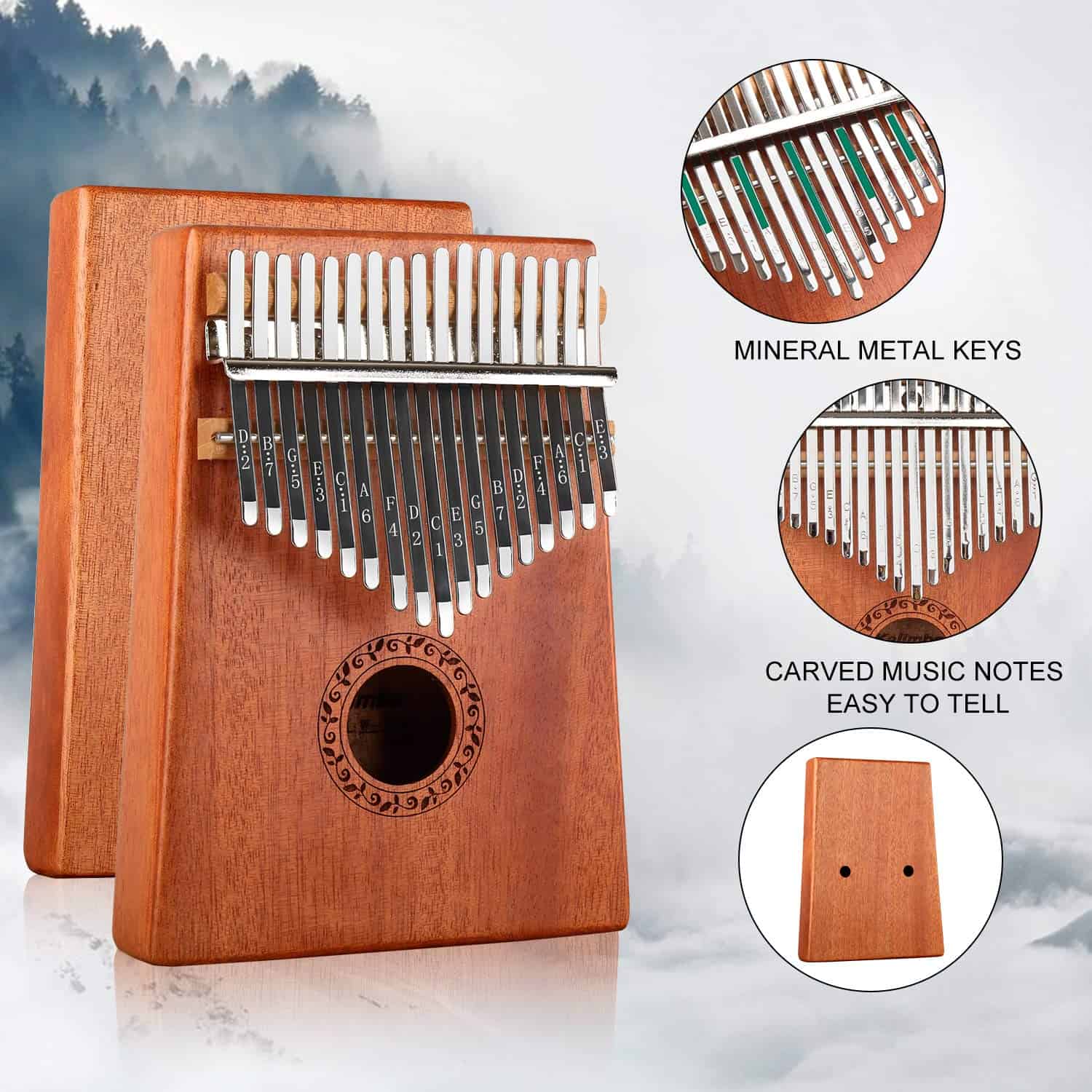 1. Material de Alta Calidad: Esta kalimba de 17 teclas está hecha a mano con material de alta calidad y barras de acero de mineral, ofreciéndote una mejor sensación de audición, visión y tacto. ¡Un instrumento de kalimba delicado y profesional de 17 teclas que te sorprenderá!