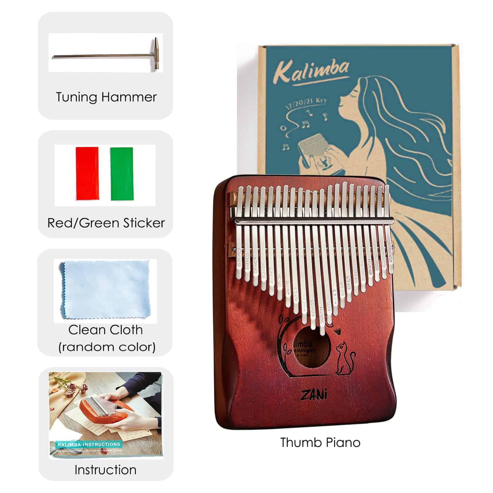 Nota: La Kalimba ha sido afinada antes de ser empaquetada, los músicos pueden usarla directamente sin volver a afinarla hasta que el sonido no sea preciso.