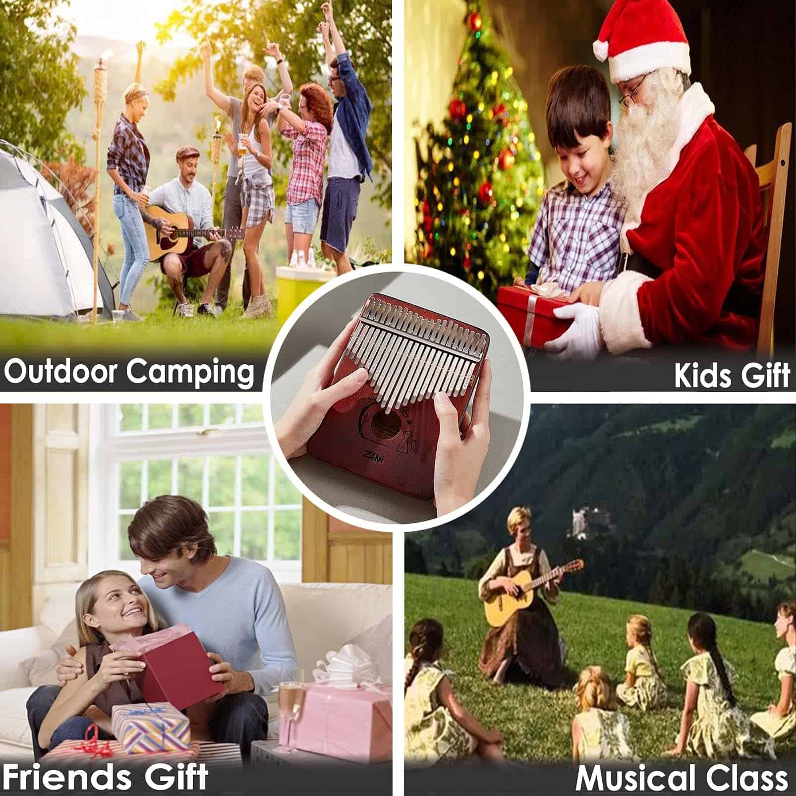 La Kalimba se usa principalmente para acompañar el canto. Al tocar, es necesario sostener el cuerpo con ambas manos y luego tocar con los dos pulgares. Cuando los pulgares se presionan y se sueltan, la lámina de acero vibrará y emitirá un sonido. La Kalimba es pequeña y fácil de llevar. Muchas personas la llevarán para pasar el tiempo en el camino. Además, las características de sonido de la Kalimba son etéreas y claras, similares a la caja de octava, pero más transparentes. Es un buen regalo para el ocio, entretenimiento y evolución. También es un instrumento musical de nivel de entrada para los amantes de la música.