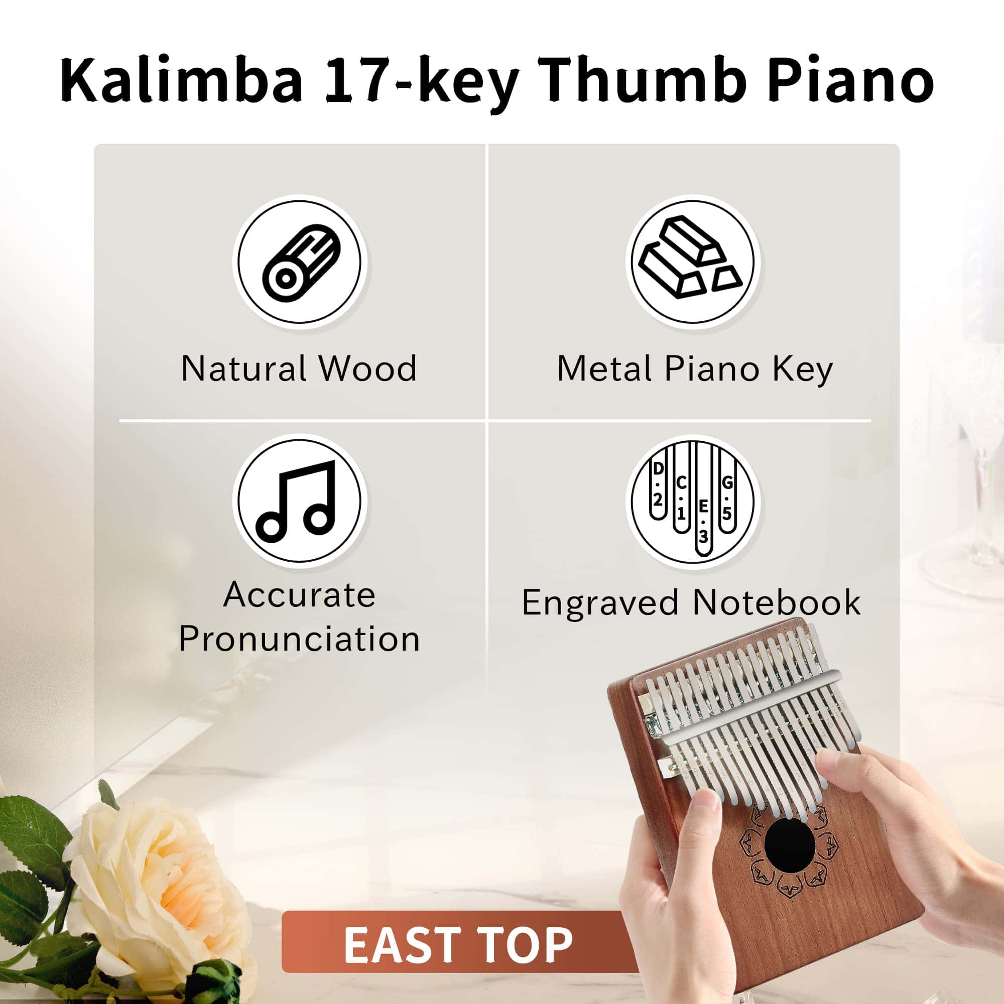 Bonito sonido: La kalimba East top puede producir un sonido agradable, solo necesitas mover el pulgar para tocar la tecla, entonces te sentirás muy feliz, es una buena elección para relajarse. Fácil de tocar: Incluye un manual en inglés e introduce cada tono de tecla, te enseña a tocarlo fácilmente y cómo tocar las canciones. Te mereces tenerlo: Con madera de caoba de alta calidad y barras de acero de mineral, tacto cómodo. Incluye manual, martillo de afinación, bolsa de tela, pegatinas de afinación, paño de limpieza, puedes tocarlo con armónica en fiestas de amigos, reuniones familiares, etc., también es un regalo de lujo para cualquiera.