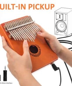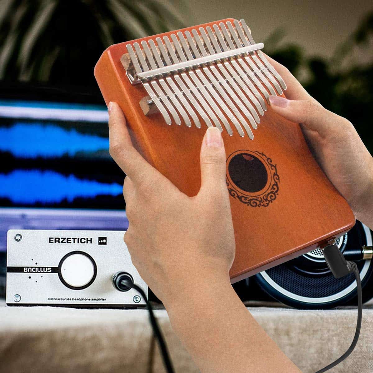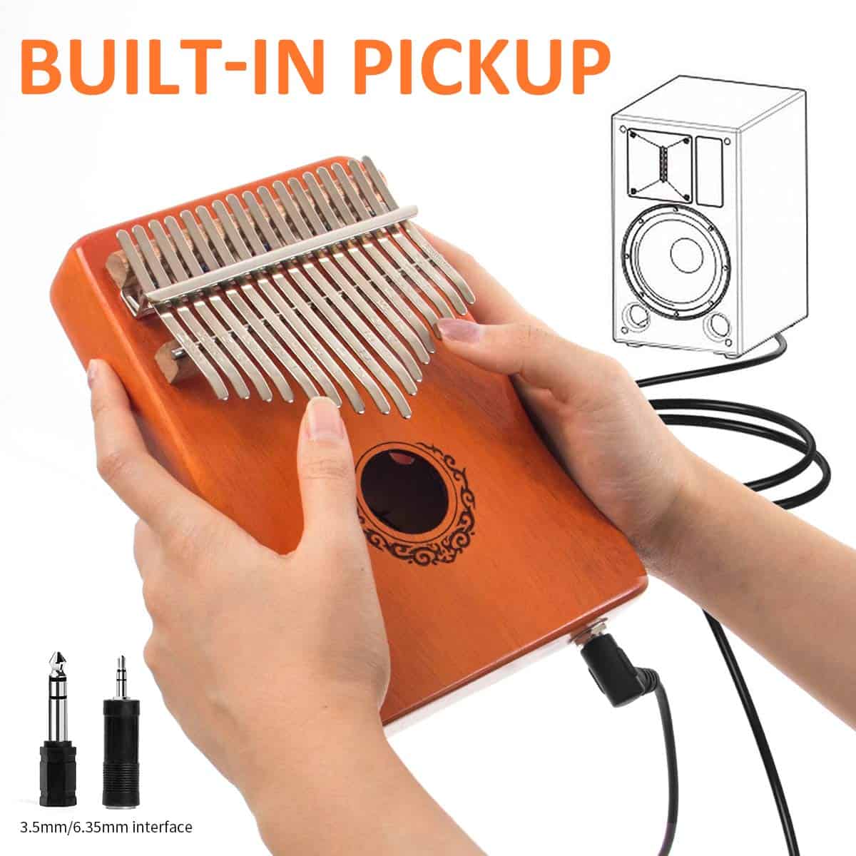 1. Pickup Incorporado: Kalimba eléctrica de 17 teclas de Aklot con pickup incorporado y interfaz de 3,5mm / 6,35mm para conectar al amplificador, perfecta para presentaciones en vivo.