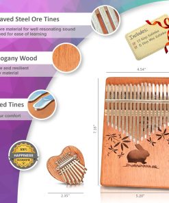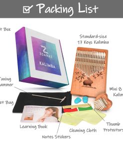 DOS KALIMBAS INCLUIDAS Este set de regalo Kalimba contiene DOS kalimbas: una de 17 teclas tamaño estándar y una de 8 teclas tamaño mini para viajar.