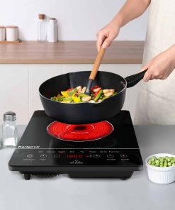 La Placa de Cocina Eléctrica de Una Sola Hornilla Karienvir es la solución perfecta para aquellos que necesitan una opción de cocina portátil y que ahorra espacio. Esta Placa de Cocina Eléctrica Portátil 110V tiene un Enchufe. Esta estufa eléctrica está diseñada como una sola hornilla y viene con un enchufe de 110V, lo que la hace fácil de usar y transportar. Ya sea que estés cocinando en una cocina pequeña o llevándola al exterior para una barbacoa, esta placa de cocina eléctrica portátil es versátil y conveniente. Esta Estufa Eléctrica de Cerámica de Una Sola Hornilla tiene 9 Niveles de Potencia. Con una potencia total de 1800W, esta estufa de encimera ofrece 9 niveles de potencia para un calentamiento rápido y uniforme. También cuenta con 8 funciones de cocción que incluyen derretir, cocinar a fuego lento, vaporizar, hervir, freír, asar, saltear y calentar rápidamente. Simplemente toca la pantalla para seleccionar la función de cocción y el nivel de potencia deseado, lo que te permite crear rápidamente una variedad de platos. Esta Placa de Cocina Eléctrica está Diseñada con Control de Detección Táctil. El panel de control y pantalla con sensores táctiles hacen que sea fácil controlar y ver los ajustes. El diseño elegante y sencillo no solo es estéticamente atractivo, sino también fácil de limpiar. La seguridad es una prioridad con la estufa eléctrica Karienvir, ya que está equipada con un bloqueo para niños para evitar manipulaciones accidentales y un temporizador incorporado para un control preciso del tiempo de cocción. Advertencias y protección contra el calor aseguran una experiencia de cocina sin preocupaciones. Esta Estufa Eléctrica de 110V es Adecuada para Todos los Utensilios de Cocina. Esta estufa de cerámica eléctrica es adecuada para todo tipo de utensilios de cocina, incluyendo cerámica, acero inoxidable, hierro y vidrio. Además, no emite radiación electromagnética, lo que garantiza la seguridad de ti y tu familia. Mejora tu experiencia de cocina con la Placa de Cocina Eléctrica de Una Sola Hornilla Karienvir, la última placa de cocina eléctrica portátil que ofrece conveniencia, versatilidad y seguridad.