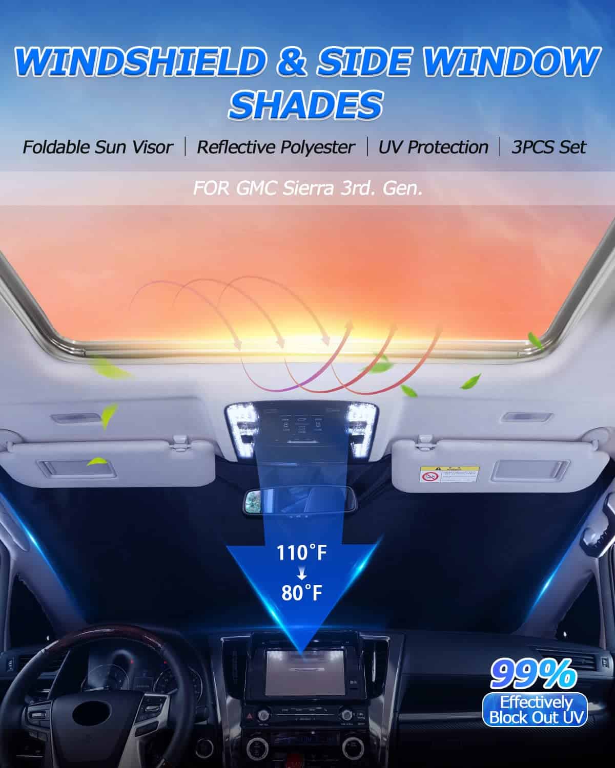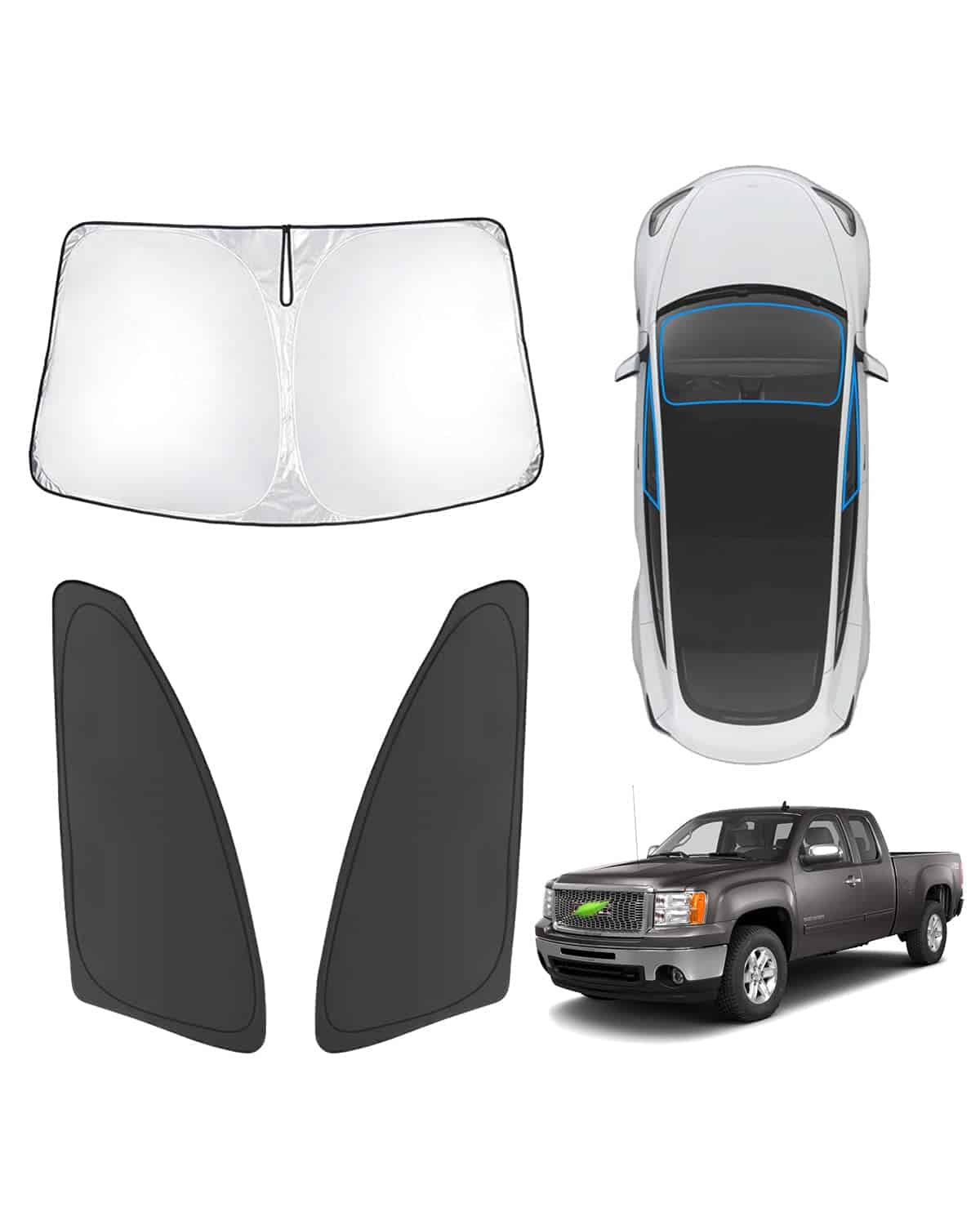 Protege tu vehículo y disfruta de un viaje más fresco y cómodo con el protector solar Karltys para parabrisas y ventanas laterales de Chevy Silverado.