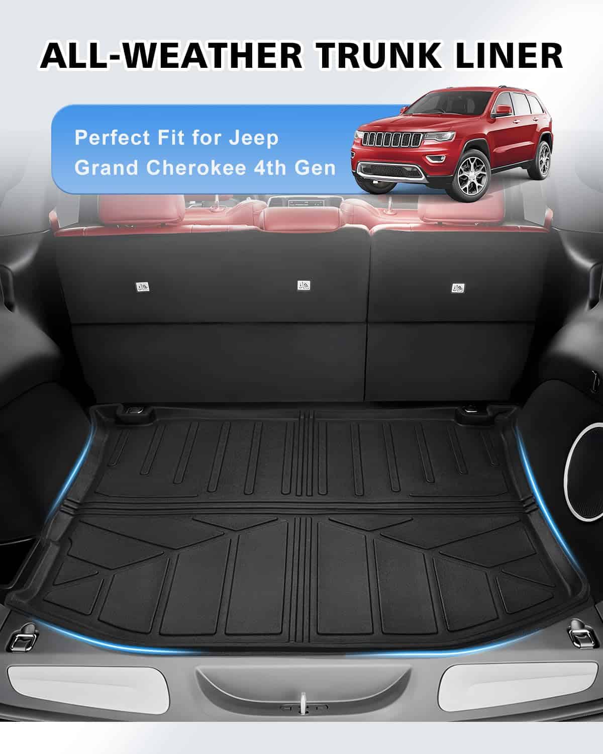 3. Protección para el maletero en todo clima A diferencia de los tapetes tradicionales para maletero, el protector de carga para Grand Cherokee de Karltys para todo clima tiene un borde grande y elevado para atrapar una cantidad considerable de desechos, derrames o suciedad, ofrece máxima protección para su área de carga y una limpieza fácil. Es un accesorio esencial para los propietarios de Jeep Grand Cherokee para proteger el maletero trasero y mantenerlo limpio.