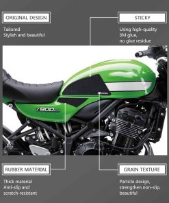 Material: 85%-90% Caucho Natural con Adhesivo. Técnicas de Aplicación: Superficies de unión limpias, secas y unificadas. Rango de temperatura de aplicación ideal: 21 °C a 38 °C. Compatible con z900rs 2018 – 2024.