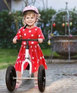 Esta bicicleta para niños pequeños tiene alturas de asiento y manillar ajustables para adaptarse a los niños en crecimiento. El triciclo viene con hardware y herramientas para convertirlo en una bicicleta.