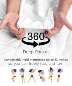 4. Diseño de bolsillo profundo para un ajuste seguro: Diseñado con un bolsillo profundo de 8-21″, este cubrecolchones ajustado se mantiene firmemente en su lugar, envolviendo su colchón de forma segura sin deslizarse o moverse durante la noche. El diseño de bolsillo profundo garantiza un ajuste perfecto para una variedad de tamaños de colchones, contribuyendo a una apariencia uniforme y personalizada.