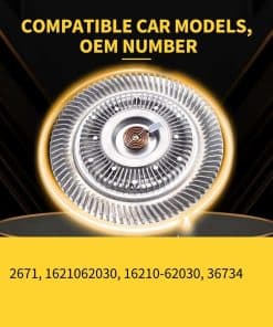 El ventilador embrague del motor KAYULONE 2671 es compatible con varios modelos de vehículos, incluyendo Acura SLX, Honda Passport, Isuzu Rodeo/Trooper, Toyota 4 Runner / T100 / Tacoma/Tundra. Esta parte es fundamental para el sistema de refrigeración, ya que proporciona un control de la velocidad del ventilador en proporción a las RPM del motor. Con números de referencia como 2671, 1621062030, 16210-62030,36734, este embrague del ventilador garantiza un funcionamiento óptimo de su sistema de enfriamiento. Compre este producto de calidad para asegurarse de que su motor se mantenga a la temperatura de funcionamiento adecuada y evitar problemas de sobrecalentamiento. Confíe en la marca KAYULONE para obtener un rendimiento confiable y duradero en su automóvil.