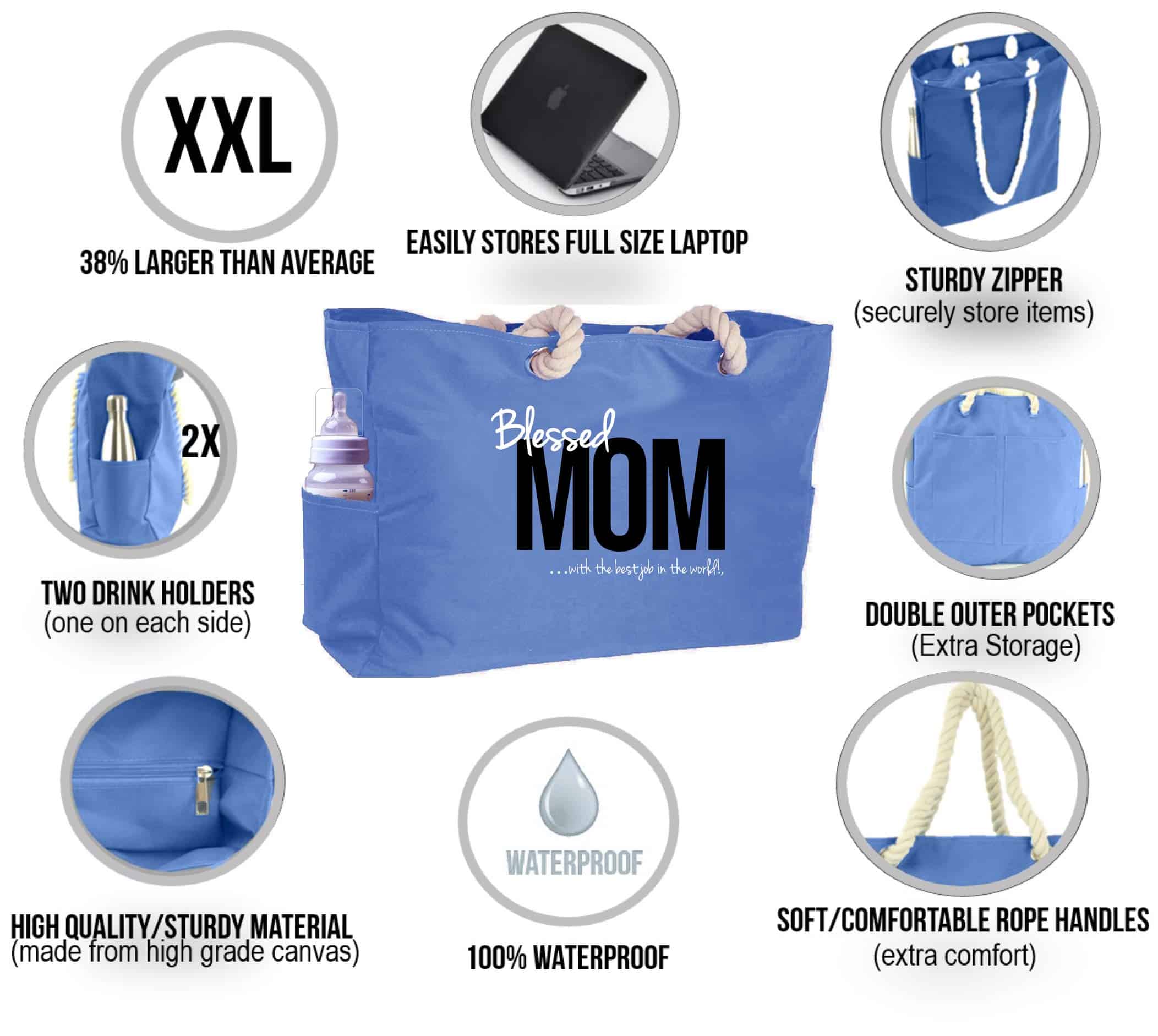 La mejor bolsa todo en uno para mamá. ¡Una de las bolsas más grandes del mercado! Te encantará la versatilidad elegante y funcional de esta bolsa. Esto mide (22″ L,15″A, 6″A). Llevar todos tus elementos esenciales en tus diversos viajes puede ser un desafío. Esta bolsa extra grande es lo suficientemente grande y versátil para CUALQUIER ocasión. Es ligera y compacta para guardar fácilmente en tu armario. También es lo suficientemente versátil para combinar con cualquier atuendo. Gran bolsa para familias, profesionales, viajeros, mamás, amantes de la moda, aficionados al gimnasio, aventureros y una gran bolsa para correr sobre la marcha. Múltiples bolsillos ocultos internos y externos y amplio espacio de almacenamiento para guardar de forma segura todos tus artículos. ¡Esta bolsa es 100% resistente al agua! Mejor Valor 1) Almacena fácilmente tus artículos sin que la bolsa se moje por completo con la tela resistente al agua. 2) Tendrás espacio suficiente para guardar tus ropas, laptops, juguetes, alimentos, bebidas, revistas, gafas de sol y lociones, etc. 3) Nuestras bolsas tienen 22 pulgadas de largo. ¡Piensa en cuánto espacio de almacenamiento extra tendrás! Materiales de Alta Calidad 4) Nuestras bolsas están hechas con asas de cuerda de alta calidad para un transporte cómodo. 5) Cosidas profesionalmente para un uso resistente y duradero. Dos Portavasos Laterales 6) Esta bolsa tiene mucho espacio de almacenamiento y compartimentos ocultos, incluyendo un bolsillo trasero exterior y dos bolsillos internos para almacenar de forma segura artículos valiosos. ¡El biberón de bebé que se muestra en la foto NO está incluido!