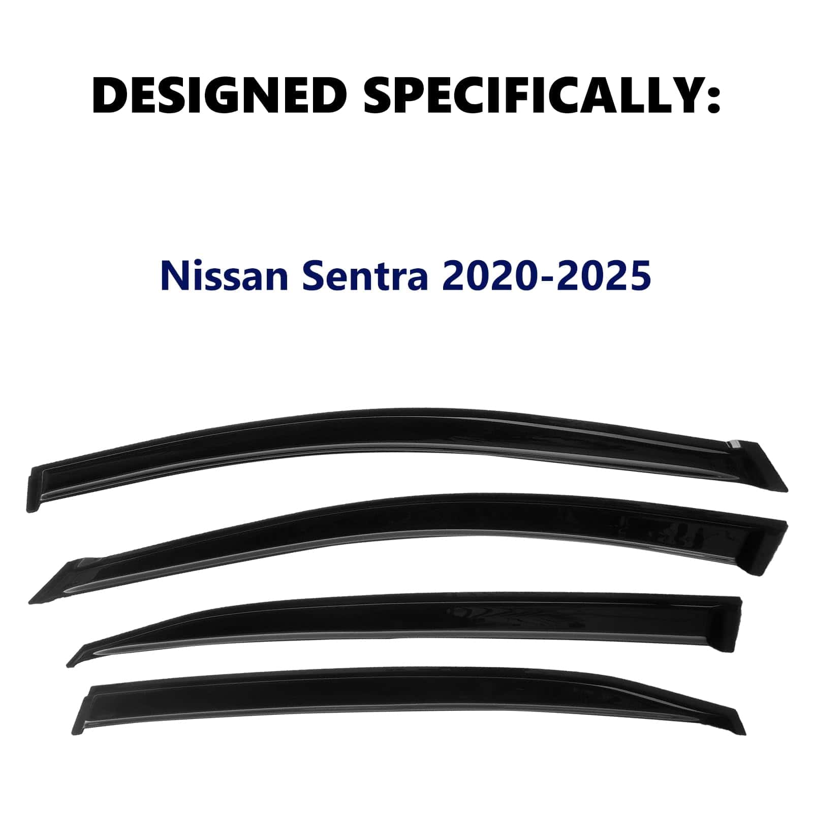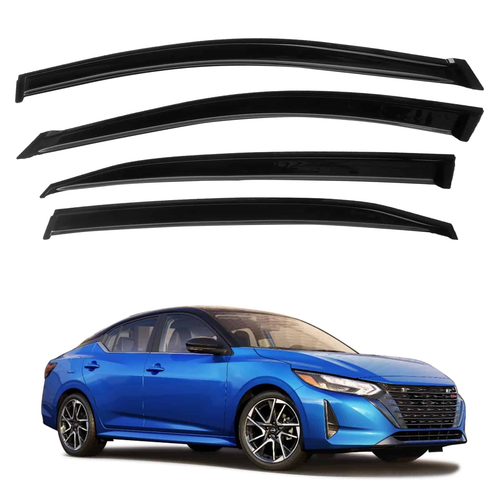 KELCSEECS Viseras de Ventana Protectoras contra la Lluvia Compatibles con Nissan Sentra 2024 2023 2022 2021 2020 Viseras de Ventana para Sentra 2020-2024, 4pcs Accesorios – Negro. Estas viseras laterales para la lluvia están diseñadas específicamente para los modelos de Nissan Sentra 2024 2023 2022 2021 2020. Diseñadas para un ajuste preciso, asegúrese de verificar la marca, modelo y año de su vehículo para una instalación precisa. No se necesita perforación ni un proceso de instalación complejo. Simplemente limpie la superficie del automóvil, despegue la cinta adhesiva de doble cara de 3M en la parte posterior de las viseras contra la lluvia y adhiéralas al automóvil. Use una pistola de calor o secador de cabello para calentar el borde de montaje después de la instalación. Presione firmemente durante 2-5 minutos para una mejor adherencia. Evite mojar el automóvil o conducir en la carretera dentro de los 3 días posteriores a la instalación para una protección duradera. El deflector de viento para ventana permite que entre aire fresco en su vehículo mientras mantiene fuera la lluvia y el clima severo. Su diseño curvo mejora la ventilación, reduce el empañamiento de las ventanas y garantiza aire fresco y limpio para una conducción más segura. Fabricadas con material acrílico de alta calidad y duradero, estas viseras laterales para ventanas están diseñadas para que coincidan perfectamente con el exterior del automóvil. El diseño flexible y aerodinámico único ofrece durabilidad y protección eficaz contra la lluvia, los rayos UV, el calor, el viento y los elementos ambientales durante los viajes. Asegúrese de que la pieza/producto comprado sea correcta para su vehículo. Inspeccione su pedido al recibirlo y, si está defectuoso, dañado o incorrecto, contáctenos de inmediato para obtener una solución. Para cualquier pregunta o inquietud con respecto a nuestras viseras de ventana, no dude en comunicarse con nosotros para obtener ayuda. ¡Estamos dedicados a brindar un excelente servicio a nuestros clientes!