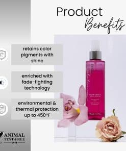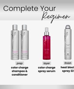 Color Charge Spray Serum proporciona protección definitiva contra factores estresantes ambientales y calor de hasta 450F para una máxima retención de color durante y después del peinado. Enriquecido con la alta tecnología de Lucha contra la Decoloración, este spray hidratante ayuda a retener los pigmentos de color dentro de la cutícula para un brillo de larga duración. Ideal para todo tipo de cabello y colores.