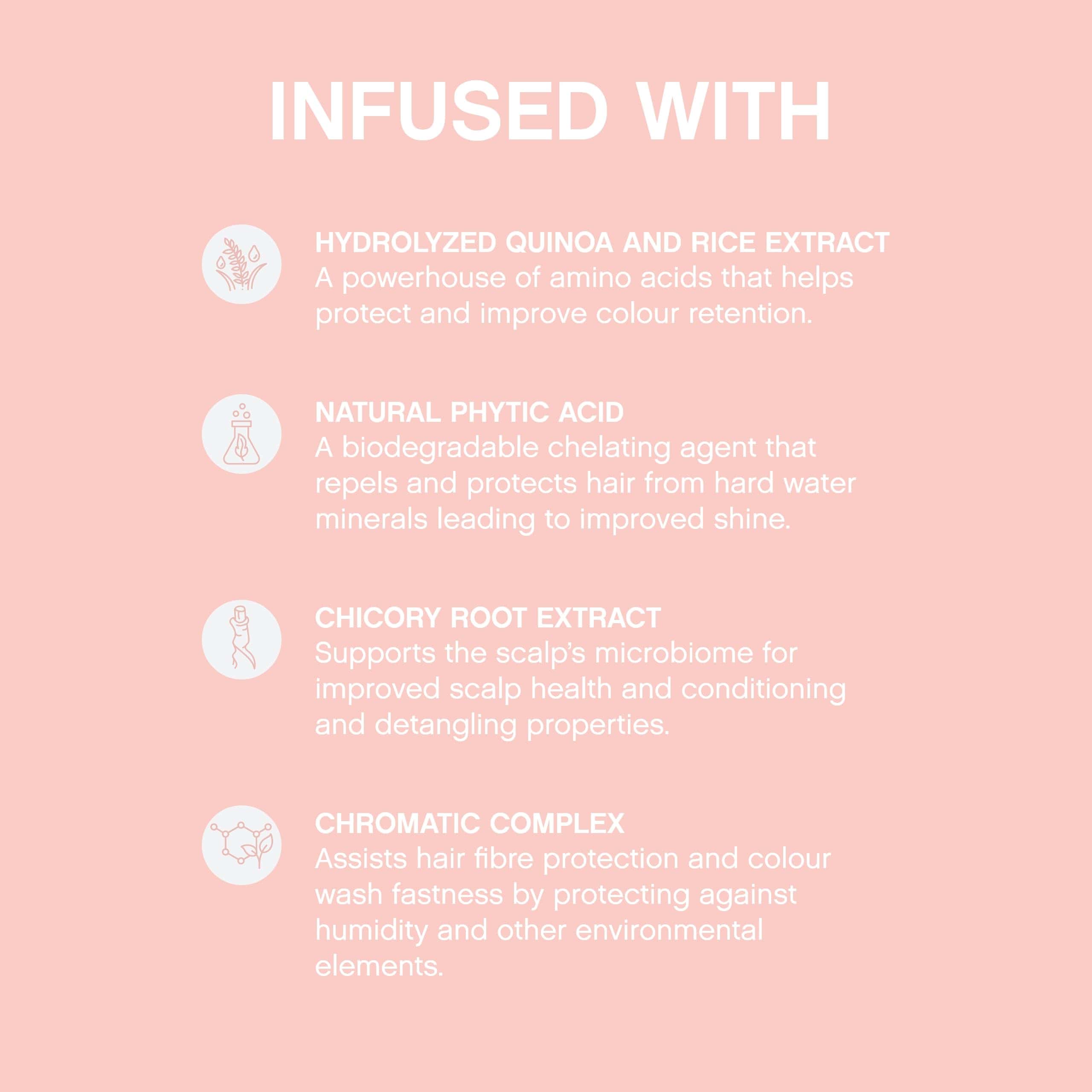 KEVIN.MURPHY EVERLASTING.COLOUR WASH es un champú especializado en el cuidado e protección del color del cabello. Su fórmula única fija el color mientras protege el cabello de la acumulación de minerales del agua dura, manteniendo así el color vibrante por más tiempo. Este champú ofrece una limpieza suave que cierra la cutícula para un brillo excepcional en el cabello, proporcionando la máxima defensa para un cabello rico en color. Su fórmula pH balanceada purifica sin dañar el color, manteniendo el cabello nutrido e hidratado en cada lavado. Además, este champú está libre de sulfatos y parabenos, lo que lo hace ideal para el cabello teñido. Descubre los productos KEVIN.MURPHY y disfruta de looks de alta moda en tu cabello, sin comprometer la salud del planeta.