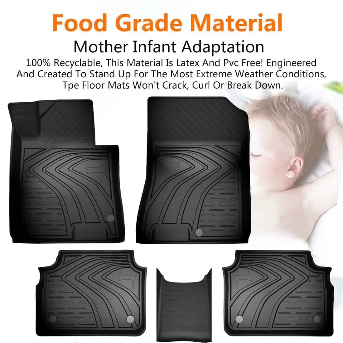 2. EXCELENTE MATERIAL: Tapetes para autos específicos de KEYOOG, hechos con materiales nuevos de elastómero termoplástico (TPE) respetuosos con el medio ambiente, tienen las características de no deformación, sin olor, cero formaldehído, fácil limpieza, etc., que pueden seguir manteniendo su auto limpio y ordenado.