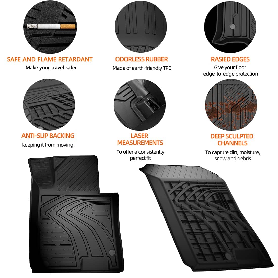3. TAPETE ESPECIAL PARA TODO CLIMA: Los bordes elevados pueden bloquear efectivamente líquidos, nieve, arena, etc., y proporcionar protección completa para los interiores del automóvil; resistencia a la temperatura -65 135 , solo sáquelos del automóvil y lávelos. Solo se necesitan 3 segundos para mantener limpio y cómodo el piso de su automóvil en cualquier estación, y resolver completamente los problemas de limpieza o deformación en verano o invierno.