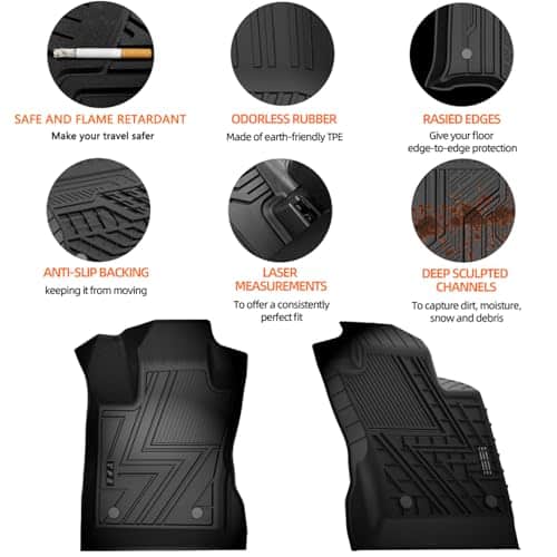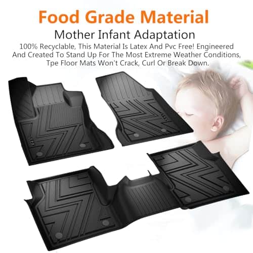 KEYOOG tapetes para autos específicos, fabricados con nuevos materiales resistentes al calor (TPE) respetuosos con el medio ambiente, tienen características como no deformación, sin olor, cero formaldehído, fácil limpieza, etc., que pueden mantener continuamente su auto limpio y ordenado. Las bordes elevados pueden bloquear eficazmente líquidos, nieve, arena, etc., y proporcionar protección completa para el interior del auto; resistencia a temperaturas de -65 135 , solo sáquelos del auto y límpielos. Solo se tarda 3 segundos en mantener el piso de su auto limpio y cómodo en cualquier temporada, y resolver por completo los problemas de limpieza o deformación en verano o invierno. El diseño ergonómico de ranura antideslizante proporciona un excelente agarre resistente y duradero, y la parte trasera de los tapetes está equipada con clavos antideslizantes que cubren completamente, que pueden prevenir resbalones incluso en condiciones húmedas y sin hebilla. Servicio de soporte posventa sincero: Le decimos sinceramente a los clientes que confían en nosotros que no se preocupen por ninguna pregunta sobre el producto, pueden contactarnos en cualquier momento, y obtendrán una respuesta en un plazo de 24 horas. Antes de realizar el pedido, verifique el modelo de su automóvil. No se confíe solo en el año, marca y modelo, por favor consulte la pestaña de compatibilidad incluyendo las notas, o envíenos un mensaje para asegurarse de que coincida exactamente.