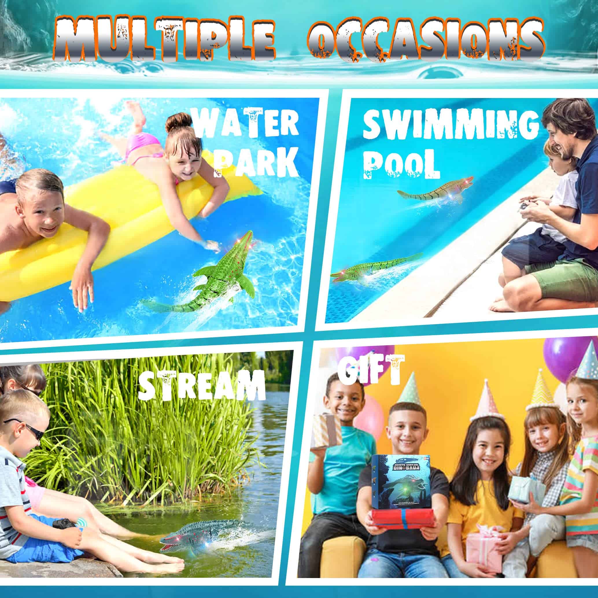 Los mejores regalos de juguetes de piscina Este juguete control remoto mosasaurio simulado está hecho de material ABS seguro y ecológico de alta calidad, con una apariencia realista, adecuado para niños mayores de 8 años para jugar, también un gran regalo de cumpleaños, fiesta infantil, Halloween, Navidad, fiesta familiar o suministros de entretenimiento al aire libre Ideal para elegir. Tanto adultos como niños adorarán este juguete de piscina mosasaurio.