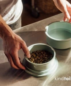 Dale la bienvenida a Kind Bowls, la caja bento para tu mascota diseñada para padres de mascotas en movimiento. Este innovador sistema de almacenamiento de alimentos presenta dos bowls perfectamente encajados en uno, lo que facilita llevar a tu perro a cualquier lugar y asegurarte de que esté bien alimentado e hidratado. ¡Di adiós a la comida en bolsas ziplock e inconvenientes! Con Kind Bowls, ahora puedes brindarle a tu mascota una experiencia de comida conveniente e higiénica donde quiera que estés.