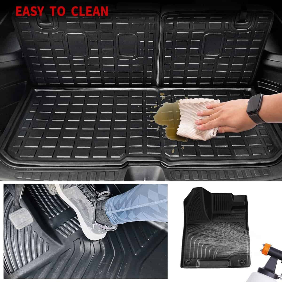 3. Material: Estos tapetes para maletero están fabricados con TPE (Elastómero Termoplástico) de alta calidad, con alta resistencia, elasticidad, respetuosos con el medio ambiente y sin olores.