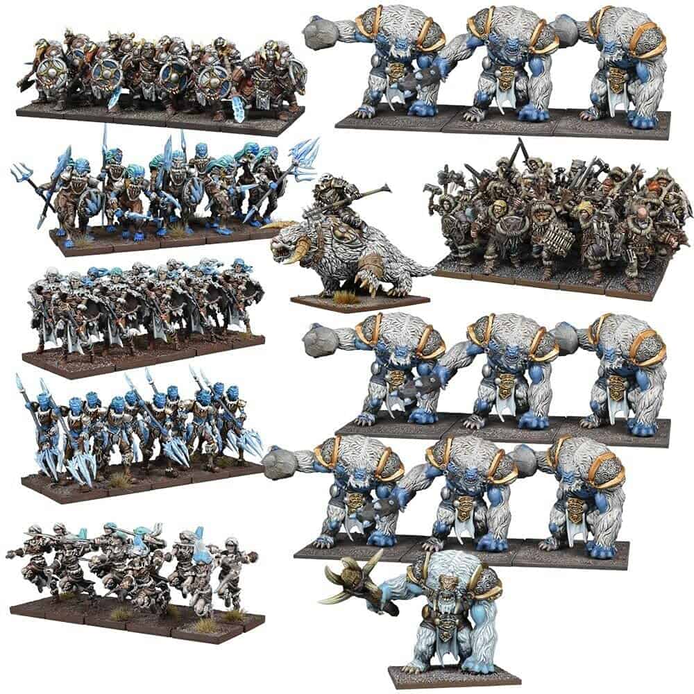 An alliance of outcasts hailing from the frozen north and united by a common purpose. Northern Alliance Warbands include a wide variety of soldiers, from half-elves and ice Naiads to the lumbering snow trolls. The forces of Talannar’s alliance are hardy, veteran warriors with years of experience surviving and fighting in the harshest of conditions. Life isn’t fair, so deal with it – a common saying amongst the northern tribes that make up the bulk of the troops at Talannar’s disposal. Contents: 20 Hard Plastic Clansmen, 10 PVC Plastic Ice Naiads, 10 Hard Plastic Naiads, Resin Ice Naiad conversion set, 10 PVC Plastic Ice Kin Hunters, 10 PVC Plastic Huscarls, 9 PVC Plastic Snow Trolls, 1 PVC Plastic/Resin Snow Troll Prime, 10 PVC Plastic Half-Elf Berserkers, 1 Resin Thegn on Frost Fang, Square Bases. Miniatures are supplied unpainted and some assembly may be required.