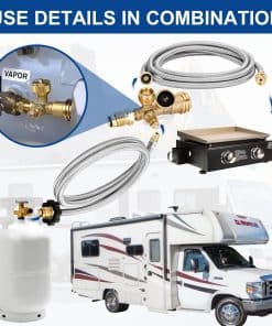 Kit Adaptador de Conexión de Propano en Latón de 4 Puertos Yendse con Mangueras Trenzadas de Acero Inoxidable de 5FT y 12FT, Kit para Tanque de Propano Extend a Stay para Conectar Botellas de Propano Auxiliares y Electrodomésticos en RV Camping: Eleva tu estilo de vida en RV con nuestro Kit Adaptador de Conexión de Propano en Latón de 4 Puertos, especialmente diseñado para largas estancias y diversas necesidades alimentadas por propano. Nuestros kits de propano en latón cuentan con protección contra sobrecorriente y alivian las preocupaciones sobre posibles fugas en su sistema de propano, así como la capacidad de conectar electrodomésticos de propano adicionales y cilindros de gas propano auxiliares. Actualizamos la manguera del tanque auxiliar de 5 pies y la manguera adicional de 12 pies a una manguera trenzada de acero inoxidable que resiste cortes, rayones, mordeduras y otros daños para garantizar la longevidad en todas sus aventuras al aire libre. La T de propano de 4 puertos se monta entre la fuente de alimentación y el regulador en una autocaravana o vehículo recreativo. Conexiones hembra x roscas de nariz suave de flujo super x roscas cilíndricas desechables macho de 1″-20 x chamfer hembra de 1/4″. Hechos de latón sólido al 100%, todos los conectores en nuestros kits garantizan durabilidad y rendimiento fiable. La T de Propano de 4 Puertos cuenta con protección contra derrames. Además, hace que su tanque de propano a bordo sea más versátil y conveniente para múltiples usos. Nuestra manguera de propano está hecha de 4 capas de trenza de acero inoxidable, resistencia a la corrosión, resistencia al envejecimiento, estanqueidad al aire, resistencia al calor, flexibilidad y otras características. Manguera de tanque auxiliar trenzada de acero inoxidable de 5 pies actualizada: nariz suave macho POL x macho invertido de 1/4″. Manguera de 5 pies para conectar un tanque de propano adicional. Manguera de electrodomésticos trenzada de acero inoxidable de 12 pies actualizada: para un electrodoméstico adicional para varias aplicaciones de baja presión. Eleva tu estilo de vida en RV con nuestro Kit de Adaptador de T de Propano en Latón, especialmente diseñado para estancias prolongadas y diversas necesidades alimentadas por propano. Mientras tanto, la seguridad es una prioridad y nuestro Kit de Adaptador de T de Propano en Latón garantiza una conexión a prueba de fugas y segura. Las conexiones y válvulas incluidas están diseñadas. NOTA: Por favor, use una llave para apretar la conexión al instalar, de lo contrario, puede producirse fugas de gas durante el uso. El paquete incluye: Una manguera de tanque auxiliar de 5 pies + Una manguera adicional de electrodomésticos de 12 pies + 1 Paquete de T de Propano en Latón de 4 Puertos + 1 Rollo de Cinta Selladora + 2 Hebillas de Velcro + 1 Llave. Nuestro kit de manguera de propano para RV viene con una garantía incondicional de devolución de dinero de un año. Si necesita ayuda, póngase en contacto con nuestro equipo de servicio en línea las 24 horas del día. Siempre le proporcionamos una experiencia de compra acogedora.
