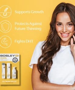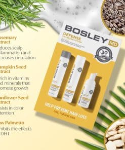 Ayuda a restaurar el cabello visiblemente adelgazado con el Kit de 30 días BosRevive diseñado para Cabello Tratado con Color, que incluye un sistema de 3 pasos simple con un Champú Nutritivo, Acondicionador Voluminizador y Tratamiento Espesante Sin Enjuague. El Champú Nutritivo BOS REVIVE sin sulfato elimina acumulaciones, como DHT, de la superficie del cuero cabelludo, mientras limpia el cabello de acumulaciones de productos y contaminación. El Extracto de Semilla de Calabaza y la Palma Enana Americana, bloqueadores naturales de DHT, se combinan con Extracto de Romero y Pantenol para ayudar a reducir la inflamación del cuero cabelludo, aumentar la circulación en el cuero cabelludo y fortalecer el cabello para promover un crecimiento saludable del cabello. Mantiene un ambiente limpio para un cabello de apariencia más grueso y lleno. El Acondicionador Voluminizador BOS REVIVE es un acondicionador diario sin peso que contiene inhibidores de DHT que aportan cuerpo y brillo sin apelmazar el cabello. La Palma Enana Americana, un bloqueador natural de DHT, trabaja con Niacina para ayudar a revitalizar el cabello y reducir la caída, mientras que la Biotina y el Pantenol ayudan a fortalecer los mechones de cabello. El cabello parece más lleno y nutrido con más volumen. El Tratamiento Espesante Sin Enjuague BOS REVIVE, diseñado para ayudar a inhibir el DHT, es un tratamiento intensivo ligero, sin alcohol, que puede ayudar a rejuvenecer el cuero cabelludo y ayudar a mantener el crecimiento de un cabello más fuerte y saludable. El Extracto de Semilla de Calabaza y las Proteínas de Soja, bloqueadores naturales de DHT, se combinan con Extracto de Células Madre de Manzana y Pantenol para ayudar a reducir la inflamación del cuero cabelludo, aumentar la circulación en el cuero cabelludo y fortalecer el cabello para promover un crecimiento saludable del cabello. Puede ayudar a espesar el cabello, reacondicionar el cabello frágil y proporcionar volumen instantáneo.
