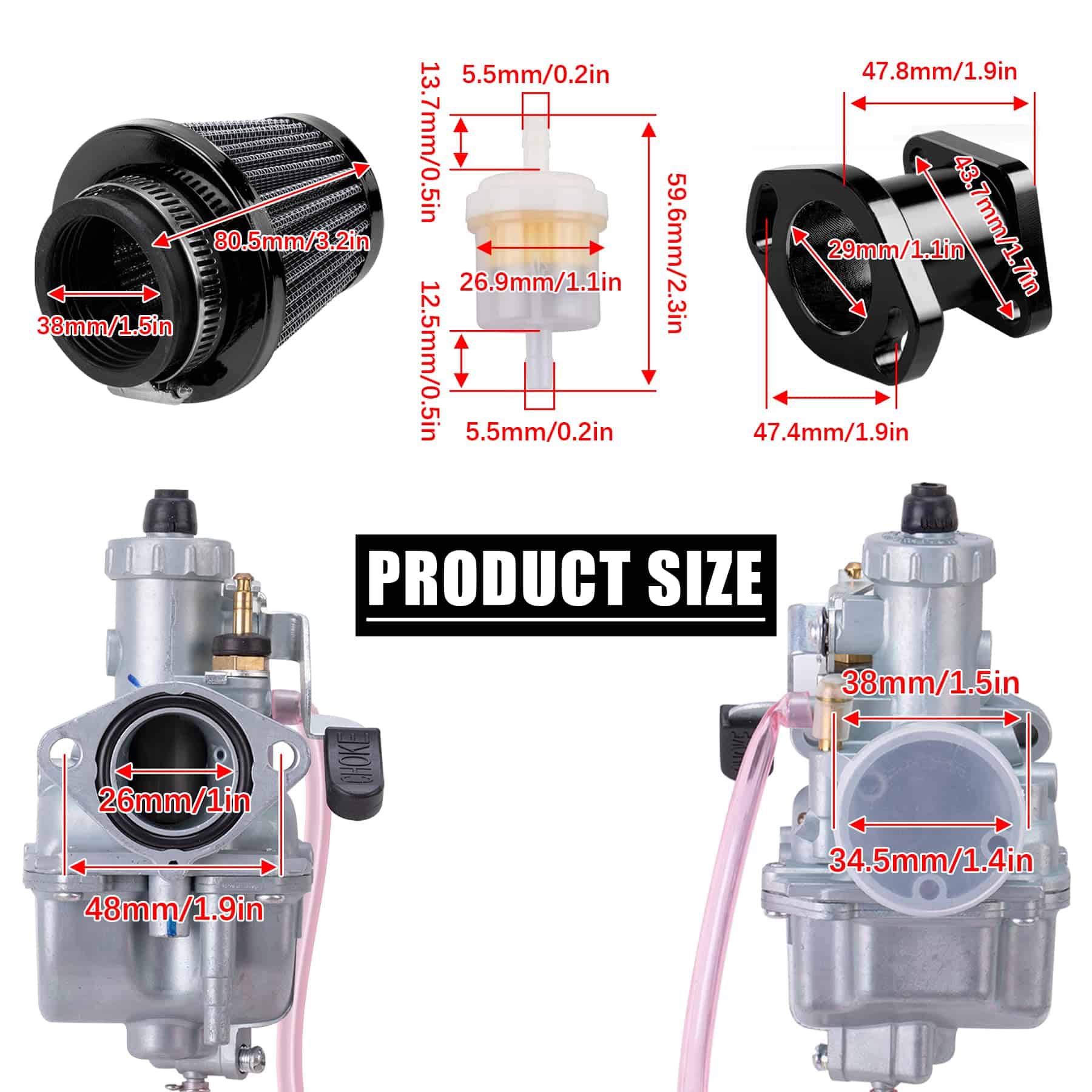 Kit Carburador ORAEVY VM22 26mm para Intake Pipe de
