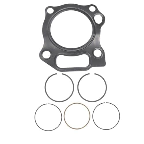 Paquete: 1- Kit de Anillos de Pistón de Calibre Estándar 1- Sello de Vástago de Válvula de Admisión 1- Sello de Cigüeñal Lado Embrague 1- Sello de Cigüeñal Lado Ventilador 1- Junta Principal Central del Motor 1- Junta de Culata 1- Junta de Escape 1- Junta de Tapa de Cabeza 3- Juntas de Admisión
