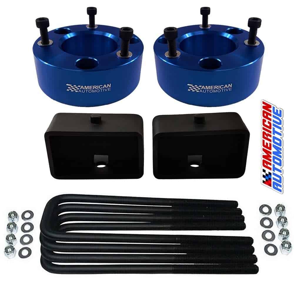 American Automotive’ Lift Kit viene con espaciadores delanteros de aluminio billet, bloques de elevación traseros de acero cónico y pernos en U de acero con hardware de grado 8. Este kit está diseñado para nivelar la parte delantera de su vehículo con la trasera y proporcionar la forma más fácil y efectiva de poner neumáticos más grandes en su camioneta sin gastar una fortuna.