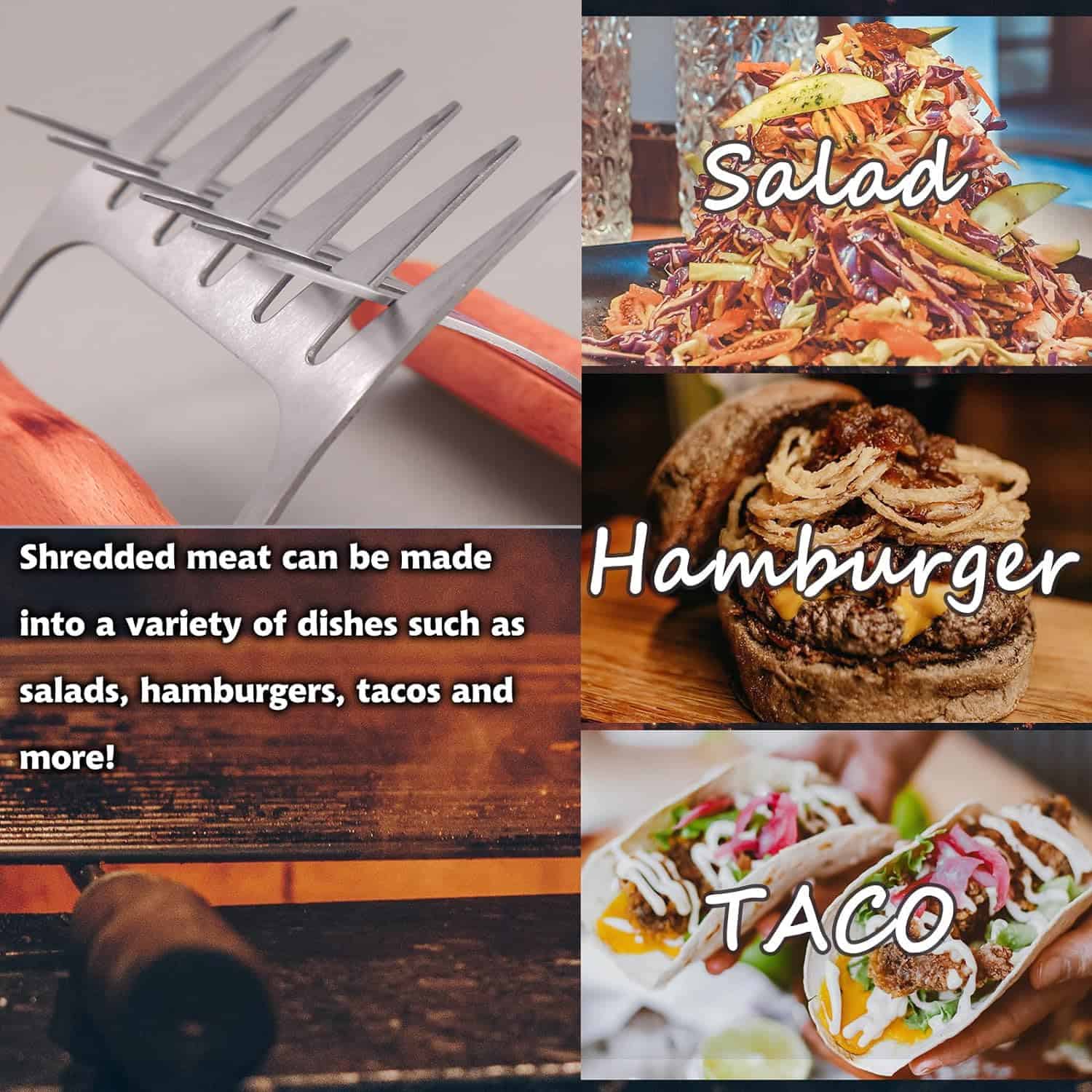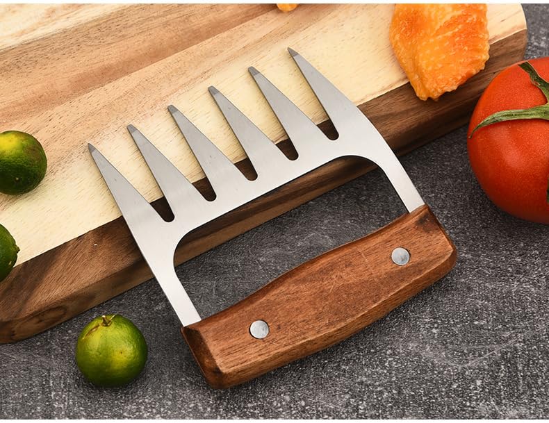 Las Garras Desmenuzadoras de Carne son la herramienta de cocina definitiva para desmenuzar, jalar y manipular carnes calientes o frías con facilidad. Estas garras resistentes al calor y resistentes están diseñadas para imitar la destreza de las manos humanas, permitiéndole desgarrar tiernamente cerdo, pollo o carne de res en hebras deliciosas para platillos irresistibles como sándwiches de cerdo desmenuzado, tacos de pollo desmenuzado o barbacoa de carne de res. Con sus tines afilados y curvados y mangos ergonómicos, estas garras proporcionan un agarre seguro, evitando resbalones y garantizando su seguridad al manipular alimentos calientes directamente de la parrilla, ahumador u horno. Fabricadas con materiales duraderos, estas garras para desmenuzar carne están diseñadas para resistir las exigencias del uso frecuente y son fáciles de limpiar, convirtiéndolas en una adición indispensable al arsenal de cualquier entusiasta de la barbacoa o cocinero casero. Desmenuce carnes perfectamente y eleve su juego culinario con estas versátiles y fáciles de usar Garras Desmenuzadoras de Carne.